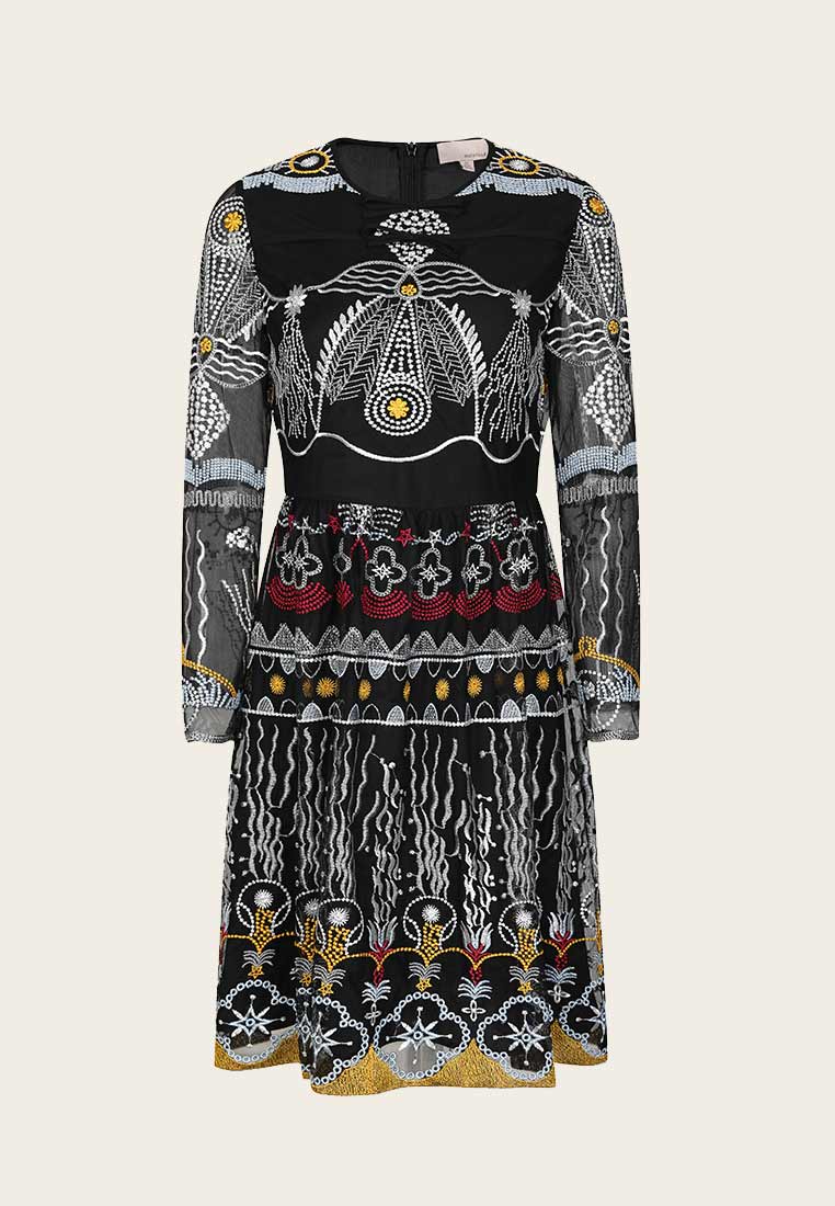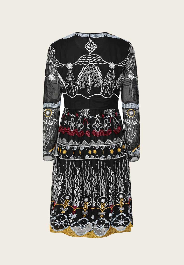 Vintage 80's Tribal Pattern Black Long Sleeve Knee-length Dress