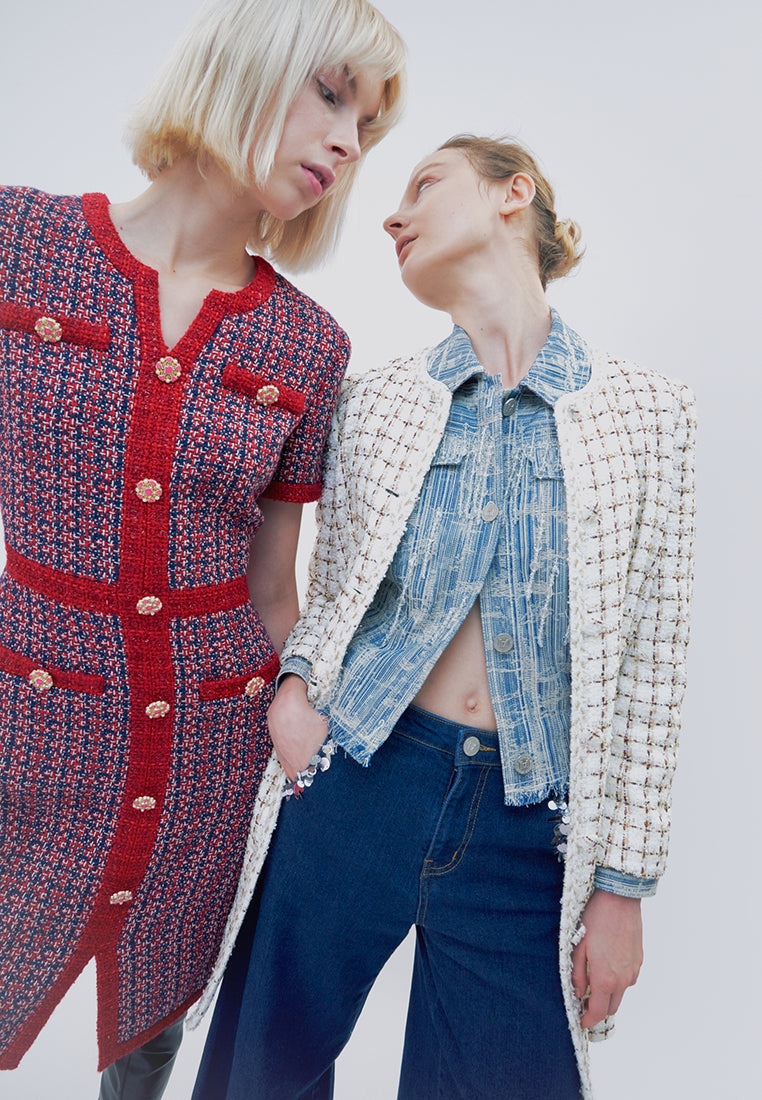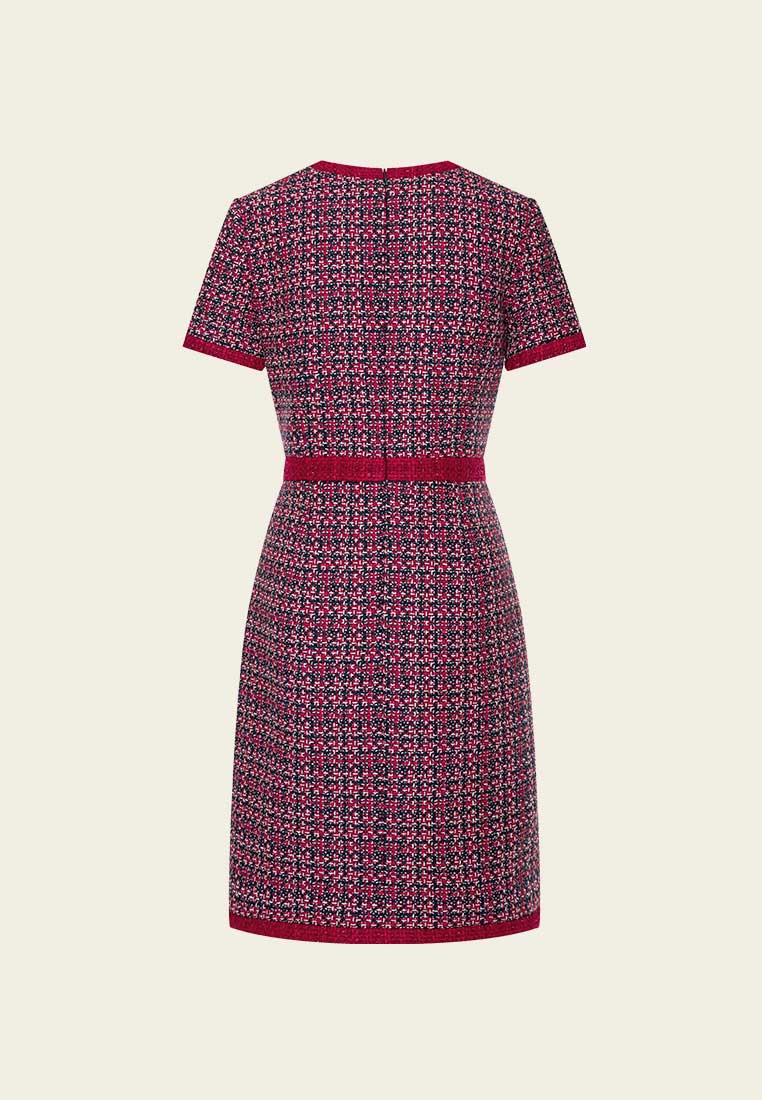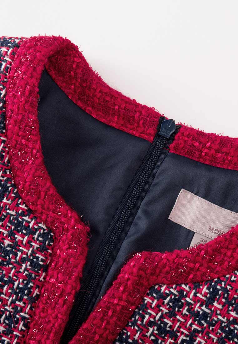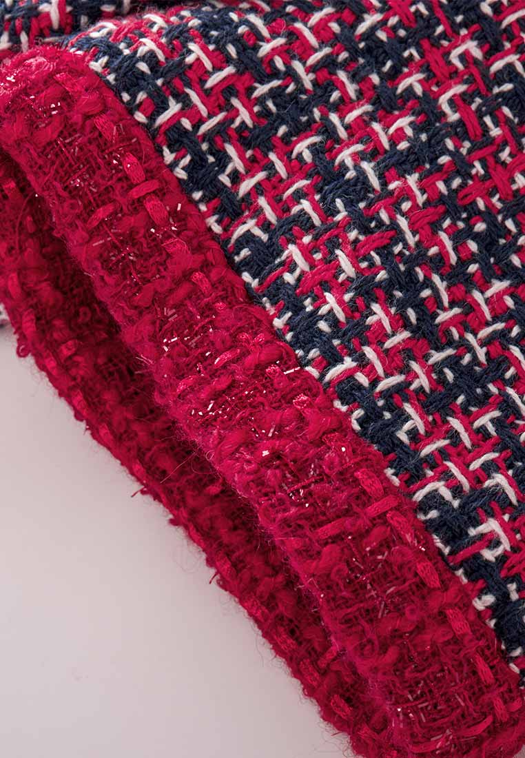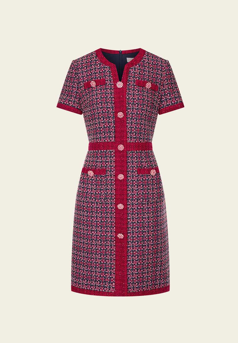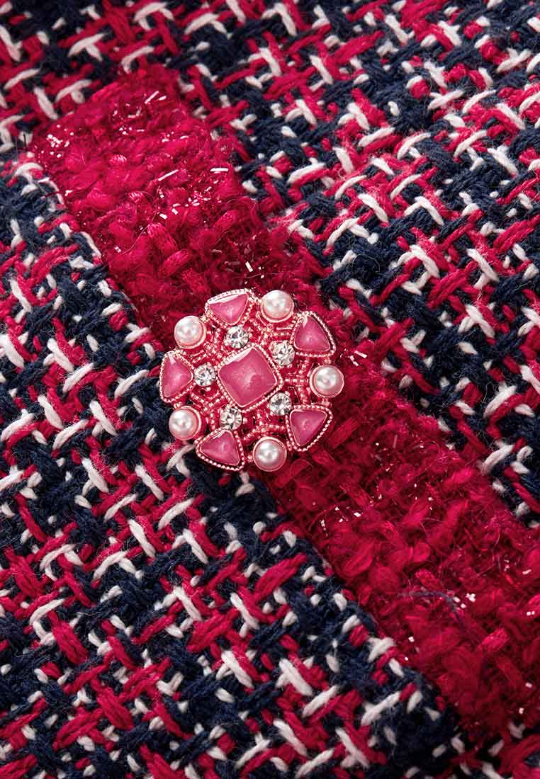 This dress brings you the 60's aesthetics. Intricately interwoven red, navy blue and white plaid pattern dress. Red tweed highlighting hem, collar, cuffs and pocket edges. The piece finish up by rhinestone and gem embedded buttons. A refined nostalgic statement piece best for commercial occasions.