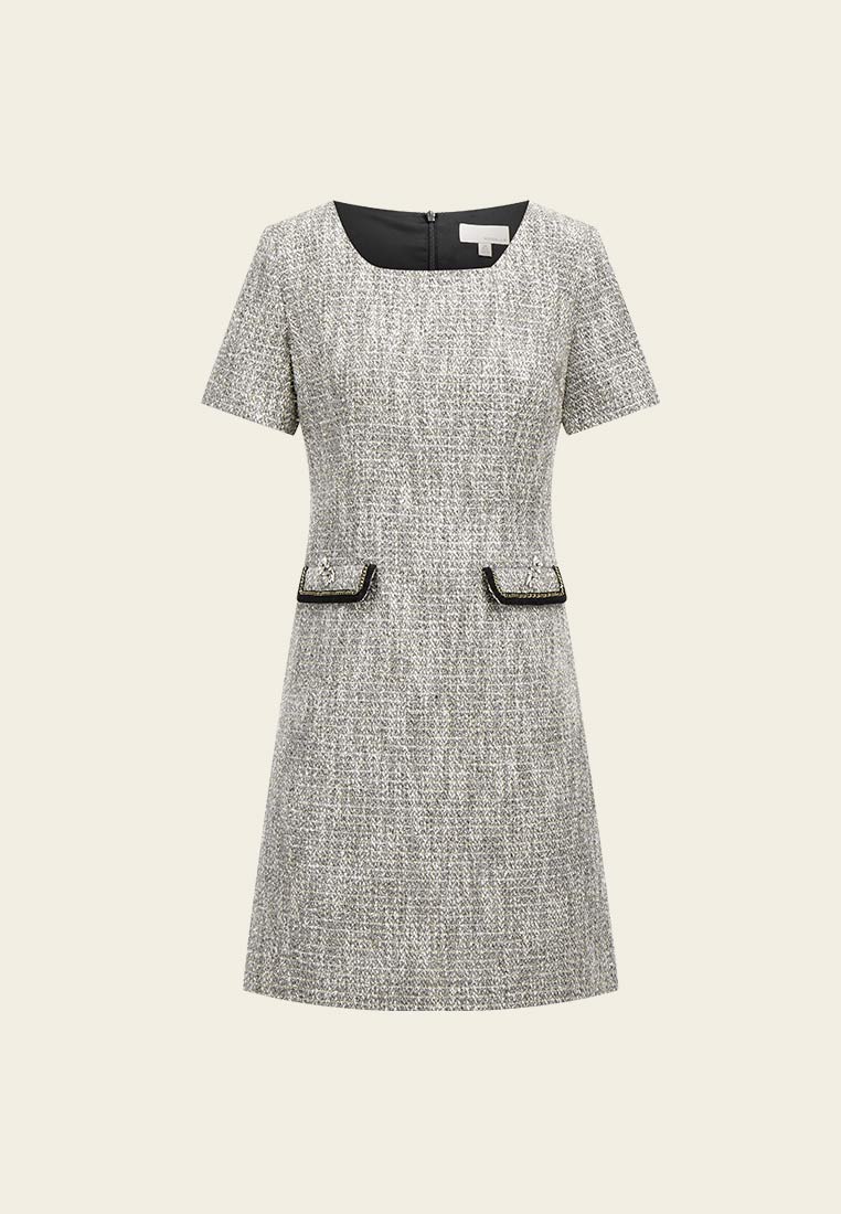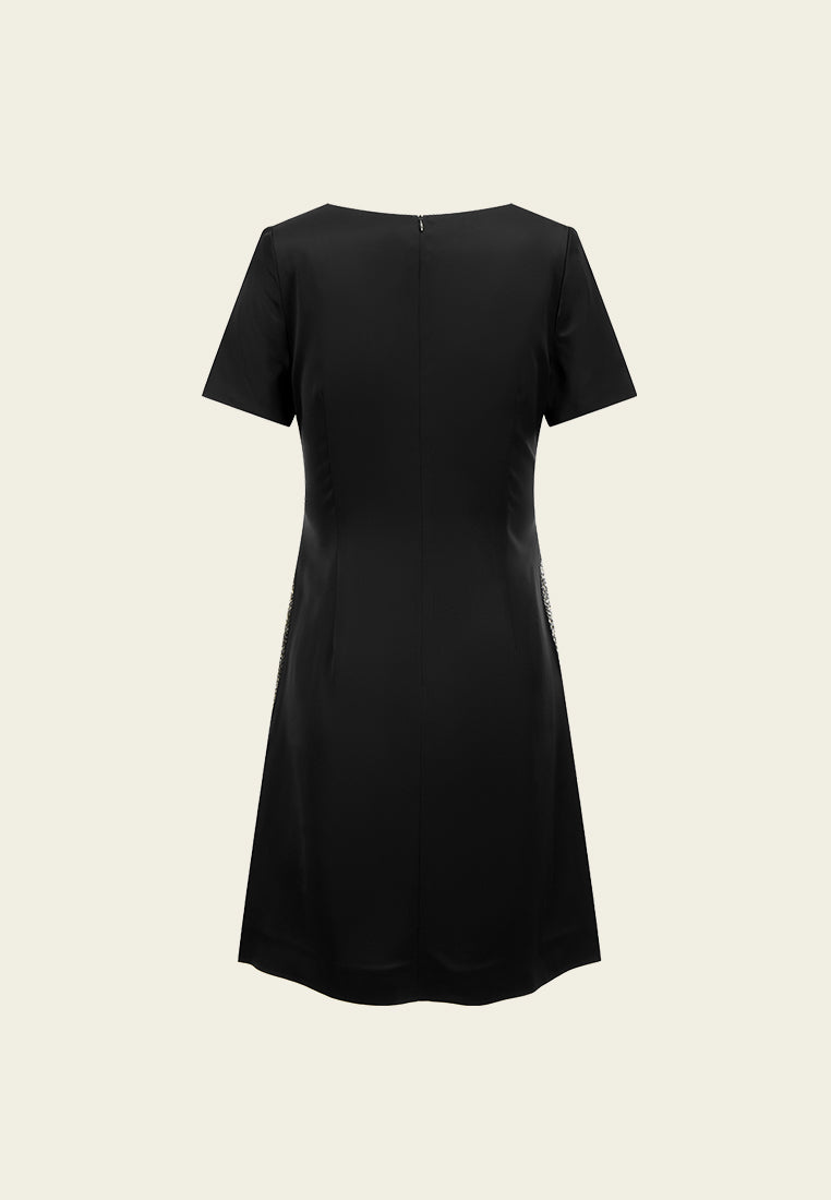 Gem-detail Square Collar Pocket Dress