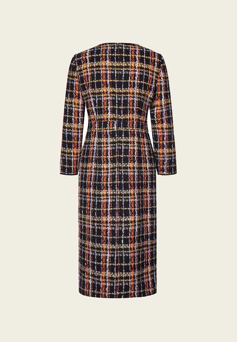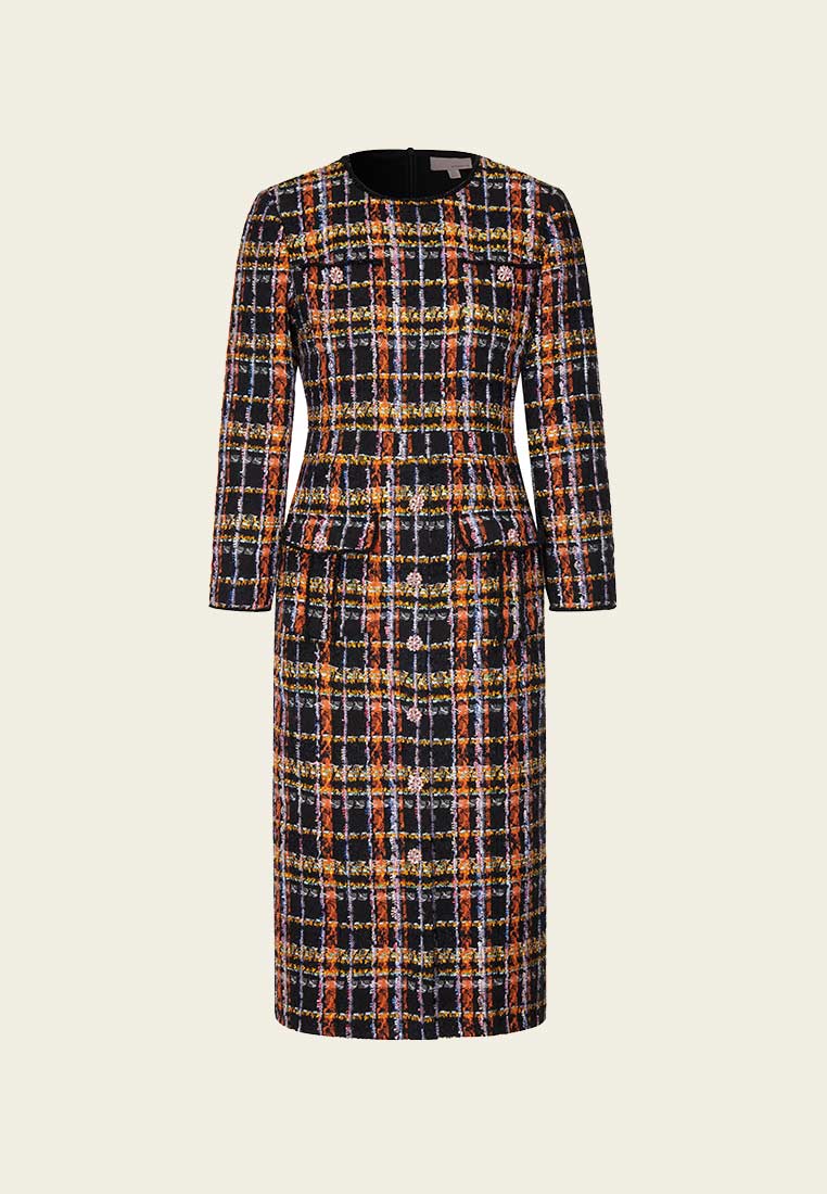 Orange Plaid Tweed Dress