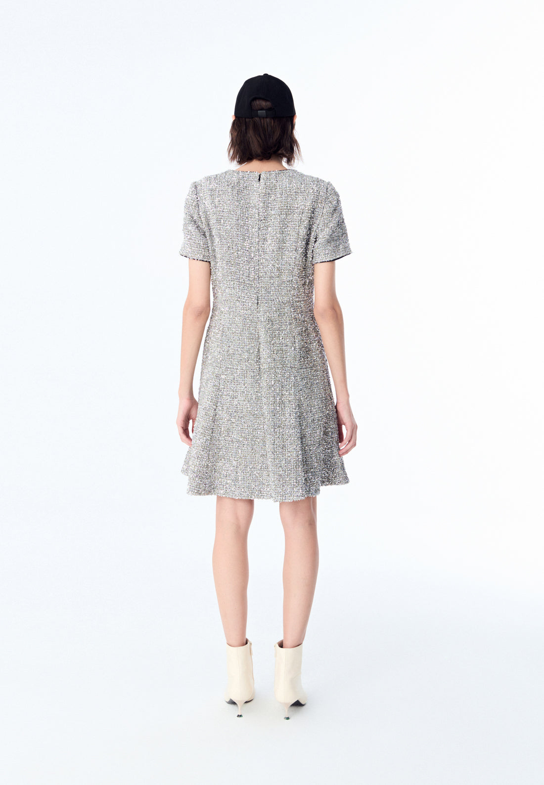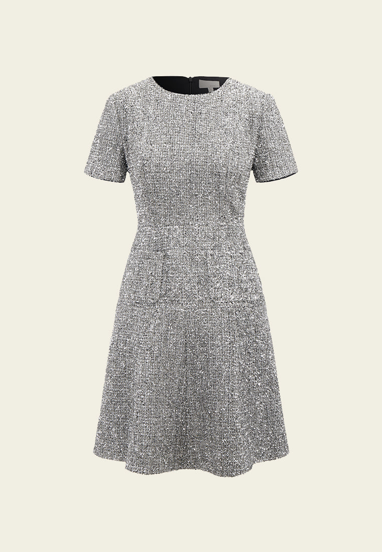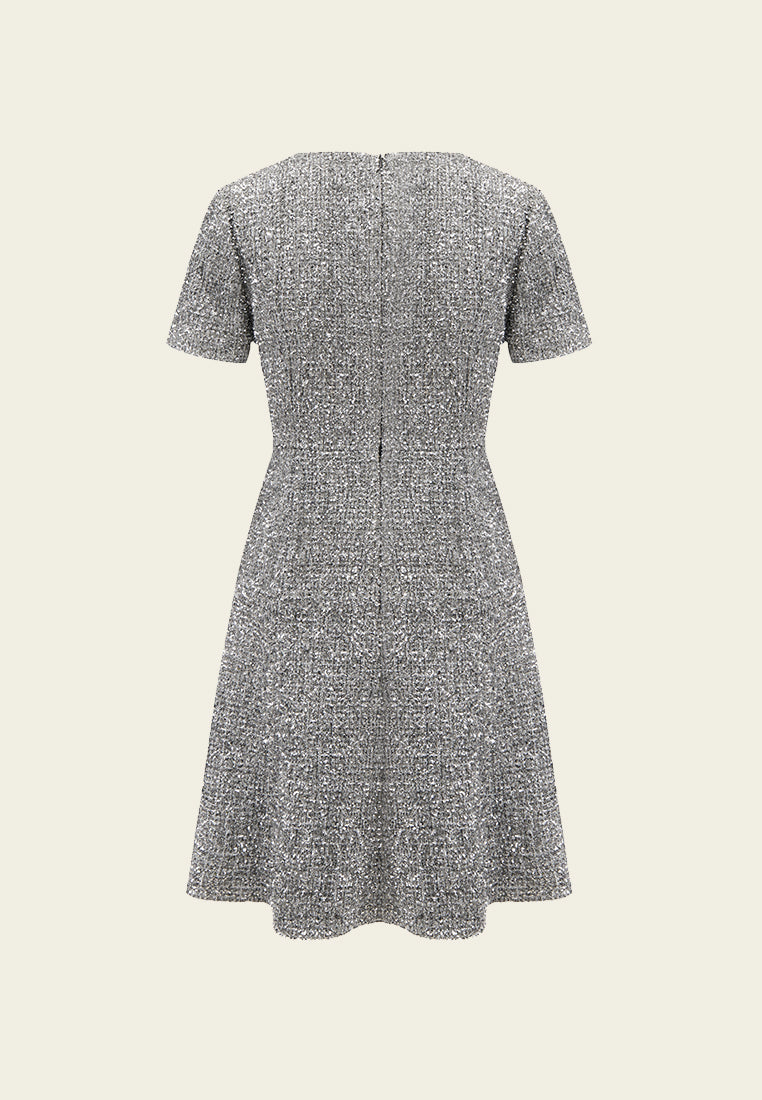 Silver Lurex Tweed Midi Dress