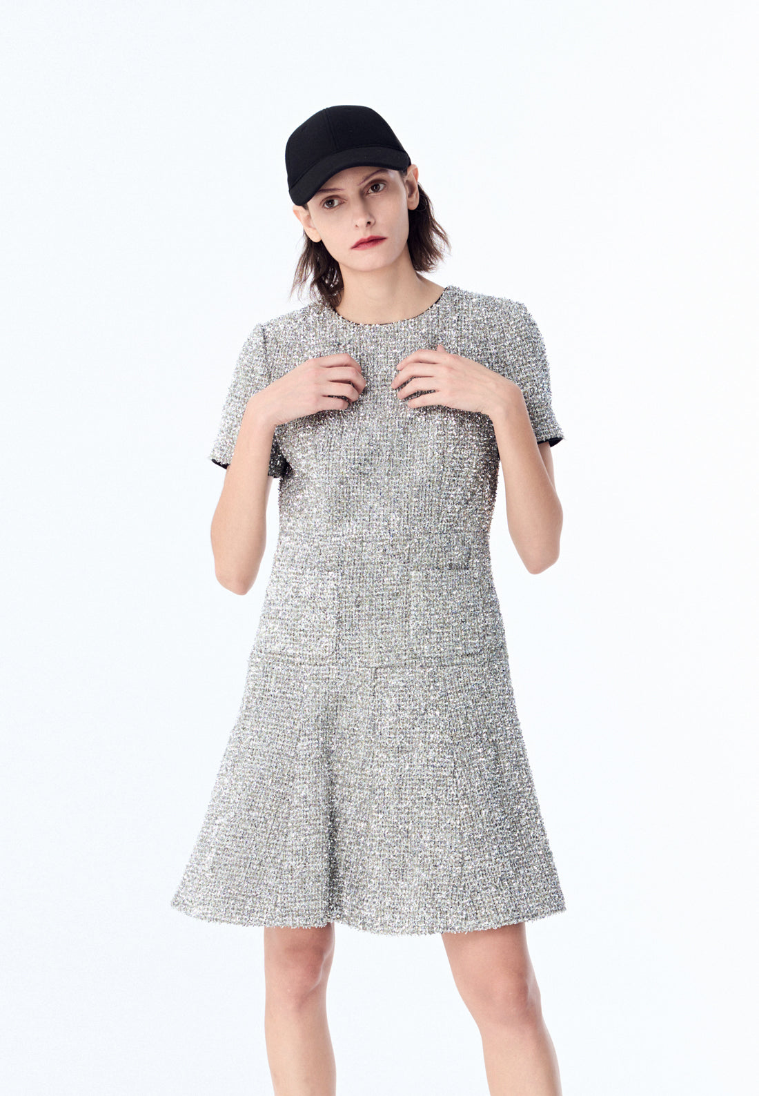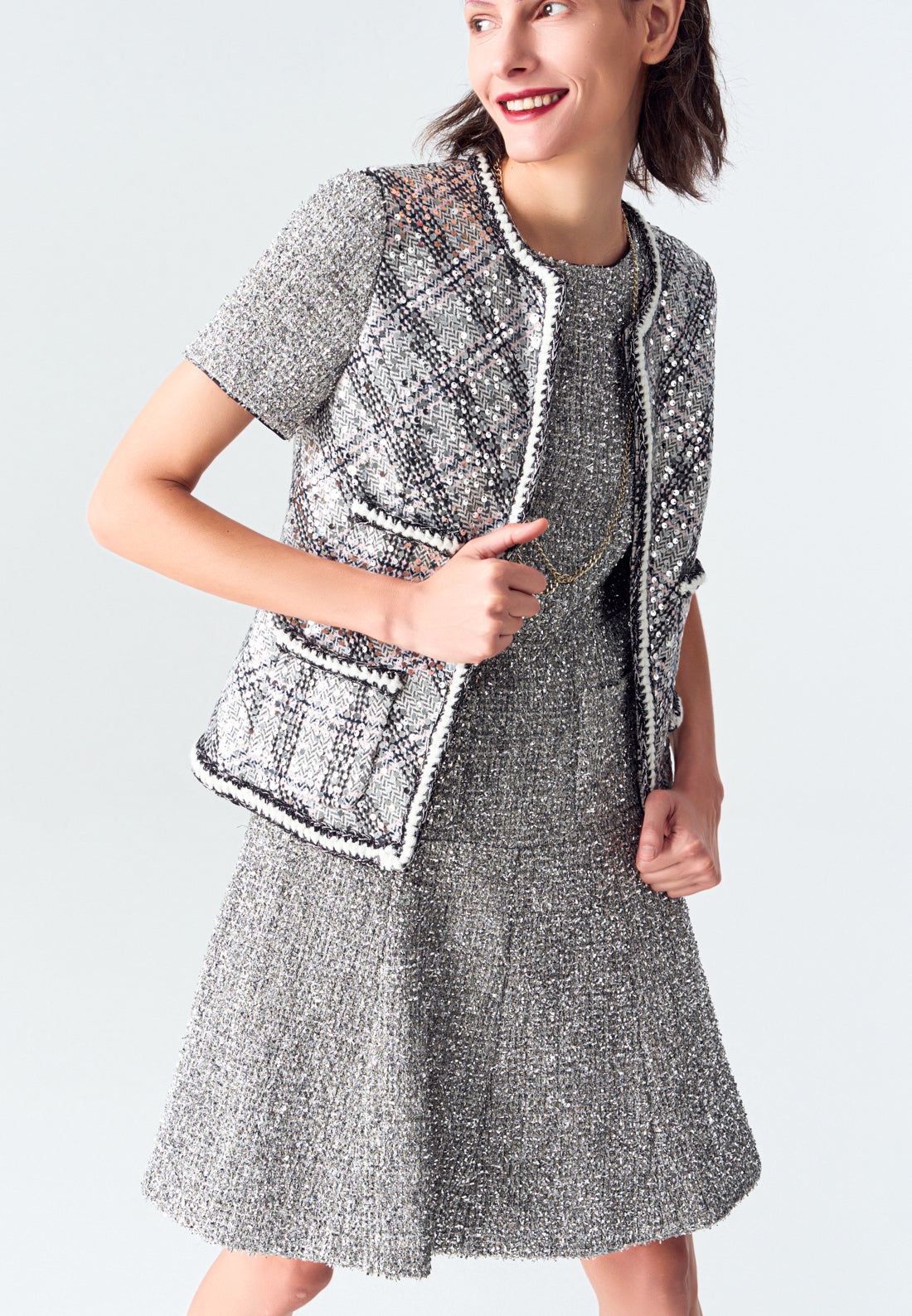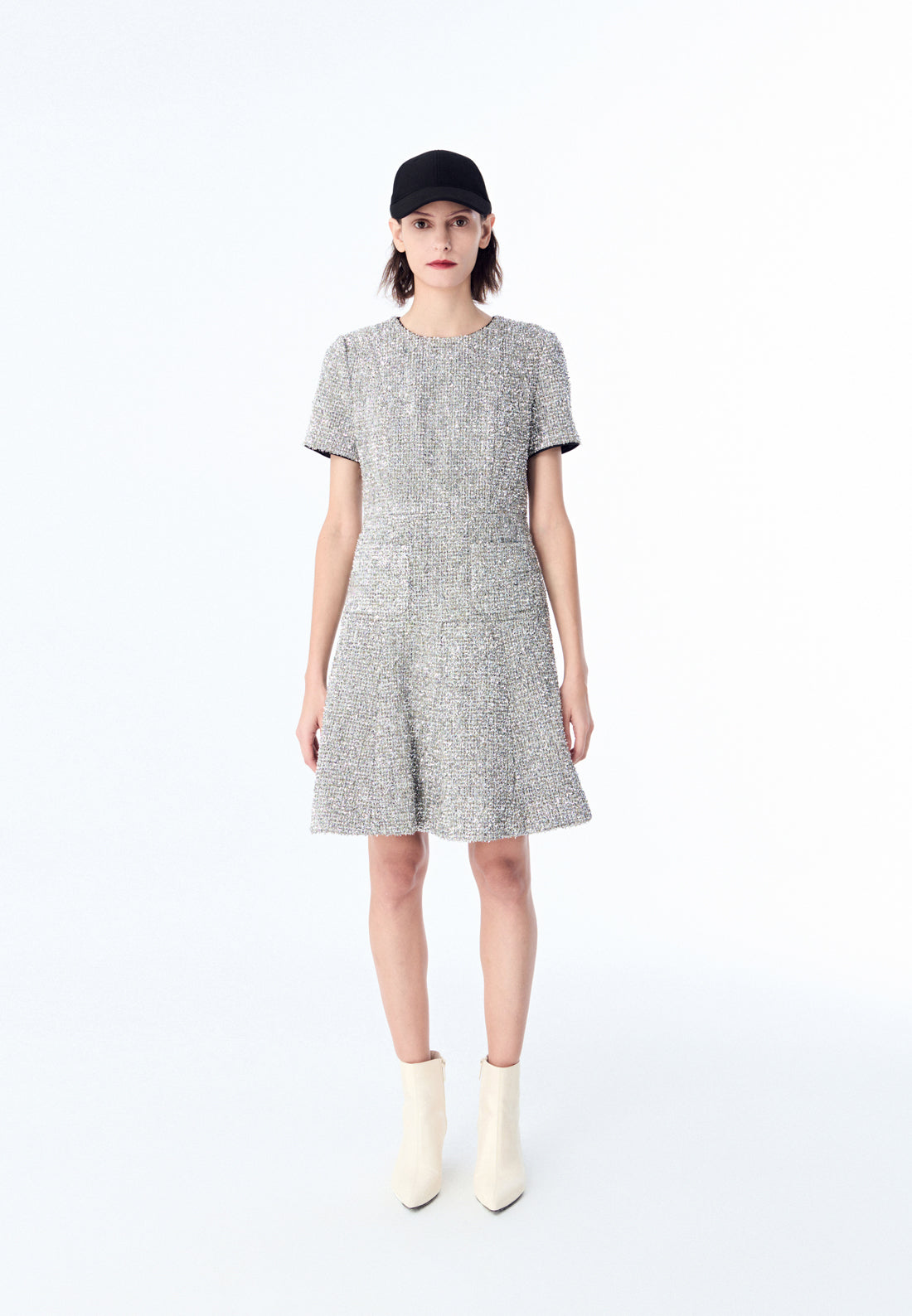 Silver Lurex Tweed Midi Dress