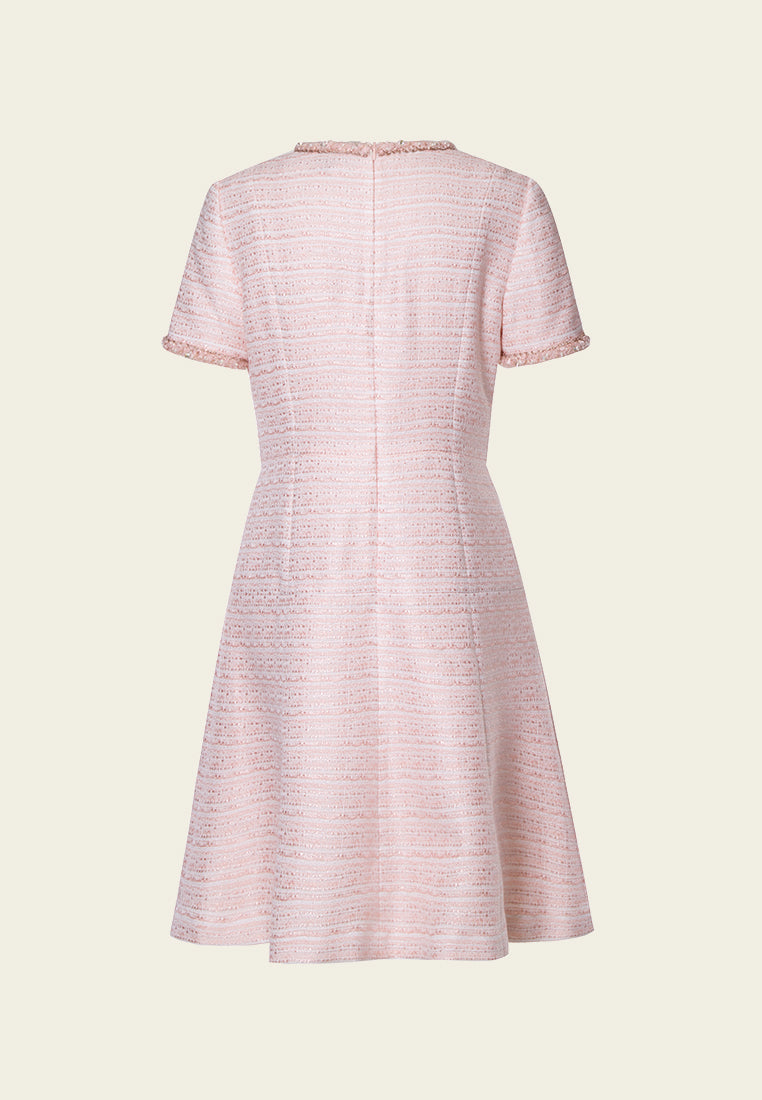 Pink Embellished Flared Tweed Dress
