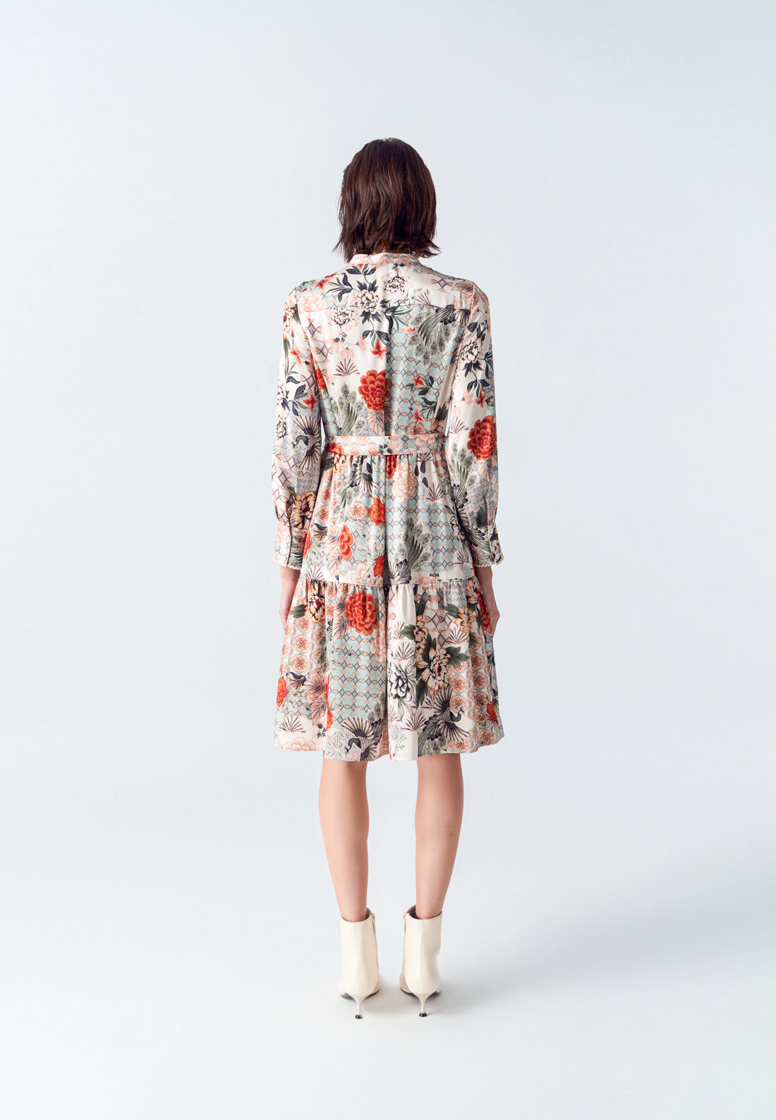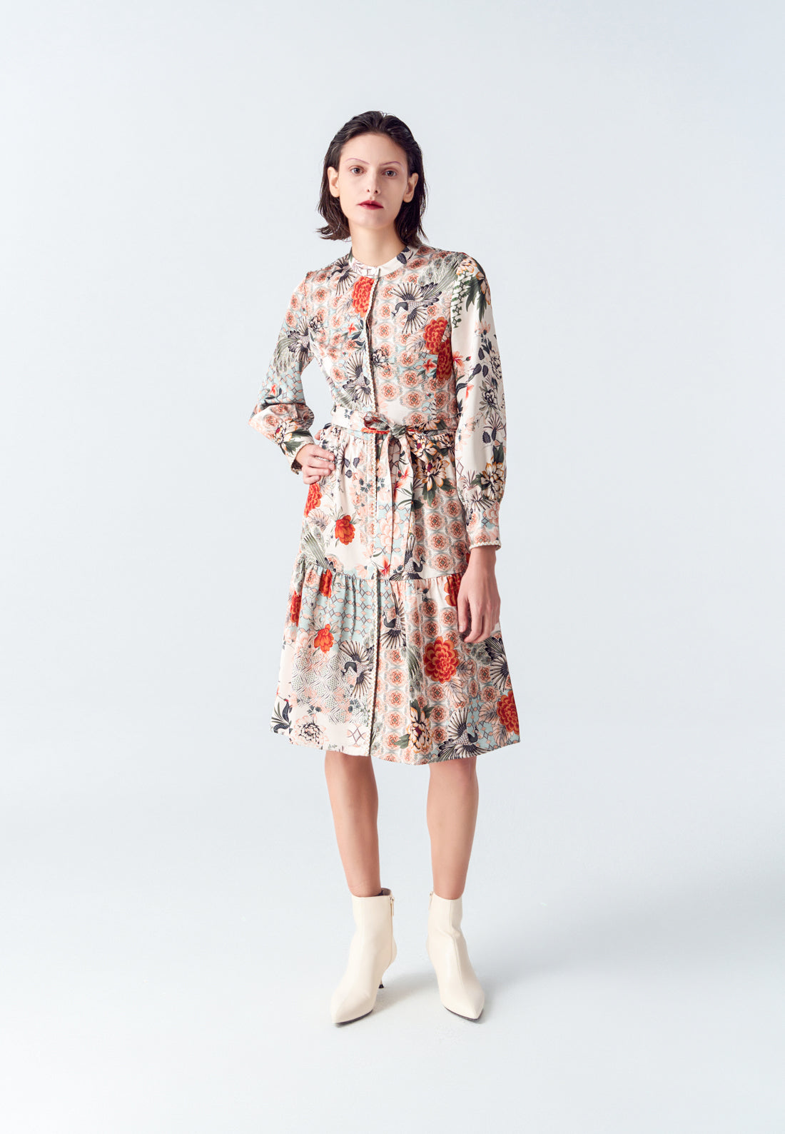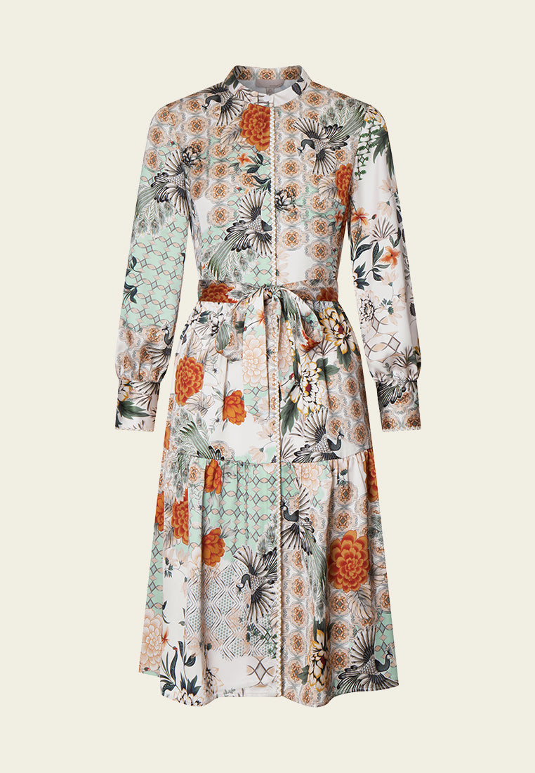 A contemporary item that impresses people with a friendly and vibrant character. Intricately repetitive patterns are reminiscent of Morocco tiles. The patterns collage with flowers and birds, resulting in an item filled with an oriental aesthetic. A ready-to-go commercial lunch/office wear you do not want to miss.