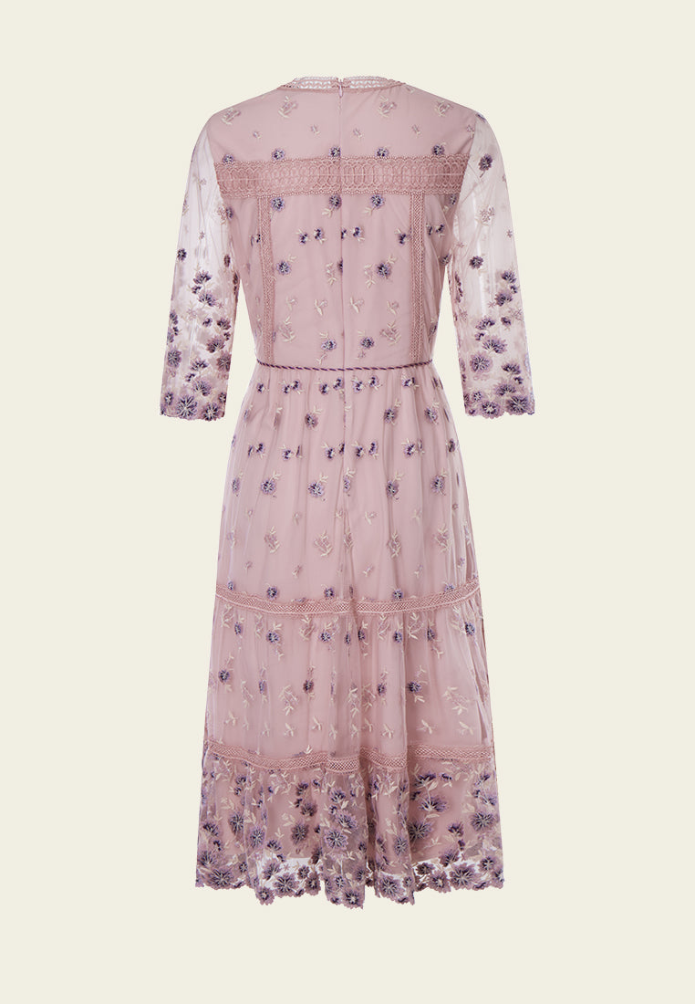 Bohemian Purple V-neck Embroidered Dress