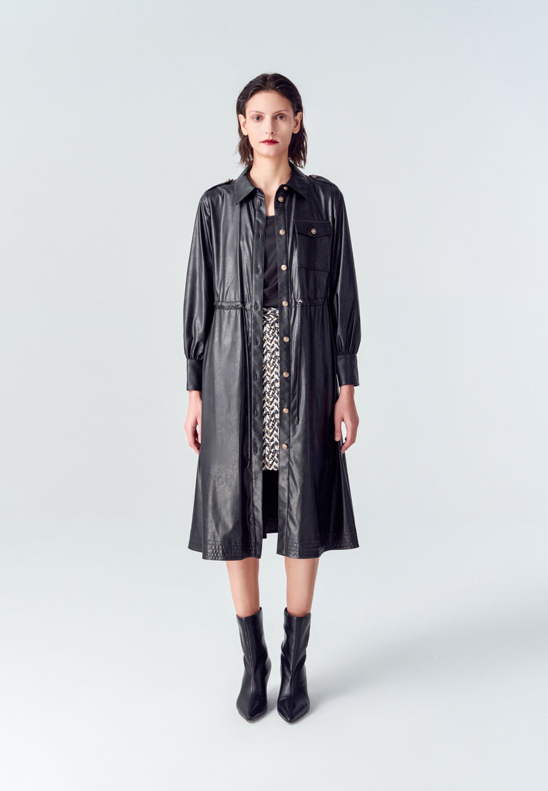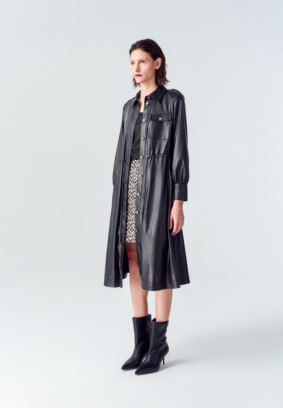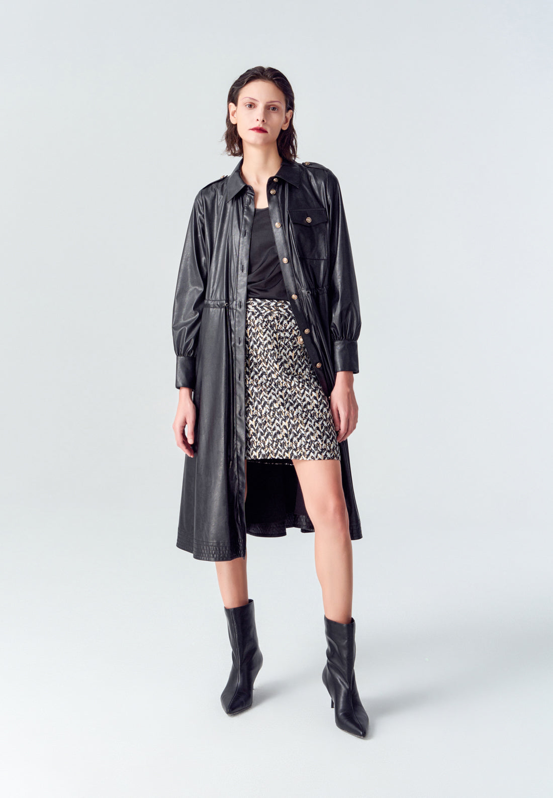 Black colorway evokes a stylish, high-end and mature feeling. Long sleeve, stand collar. Trimingless design makes the item minimalistic. Neat and chic. A ready-to-go item to show your confident and aesthetic sense to your client or companions