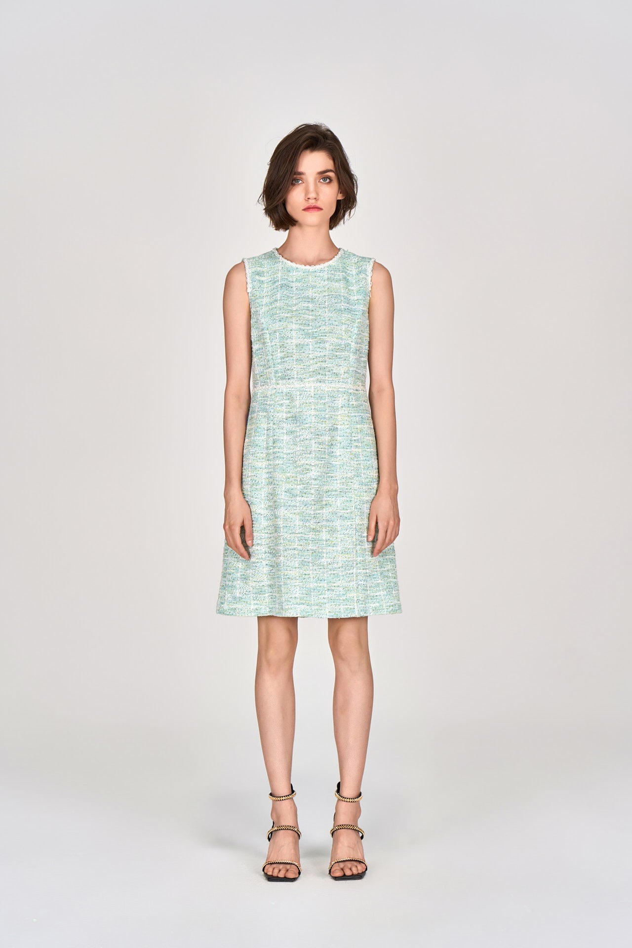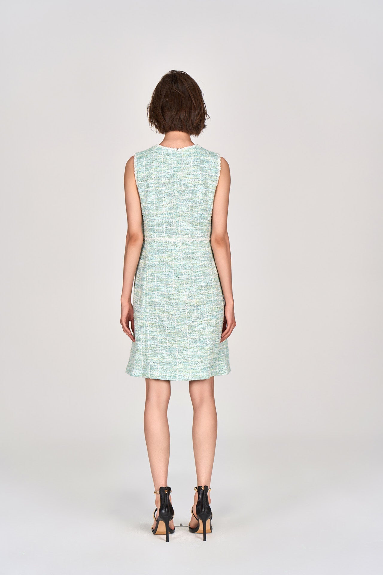 Mint Green Sleeveless Stretch Tweed Dress