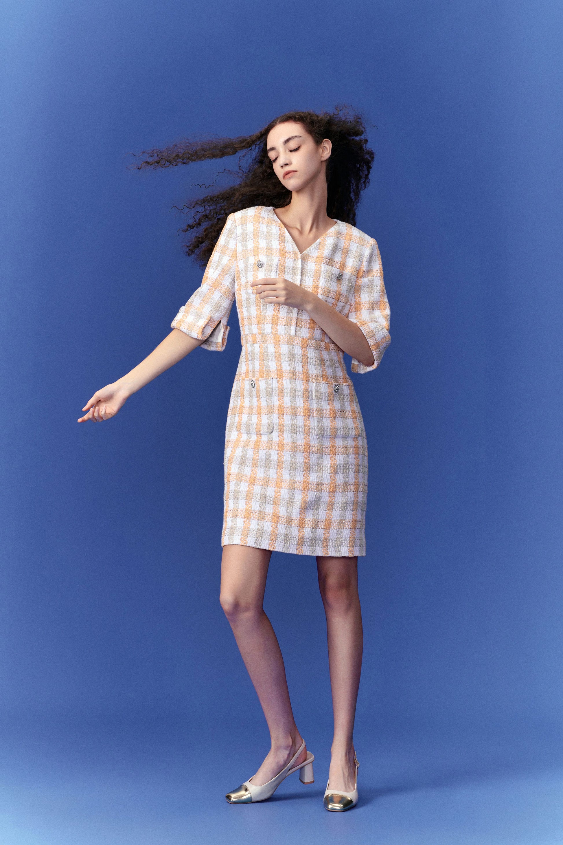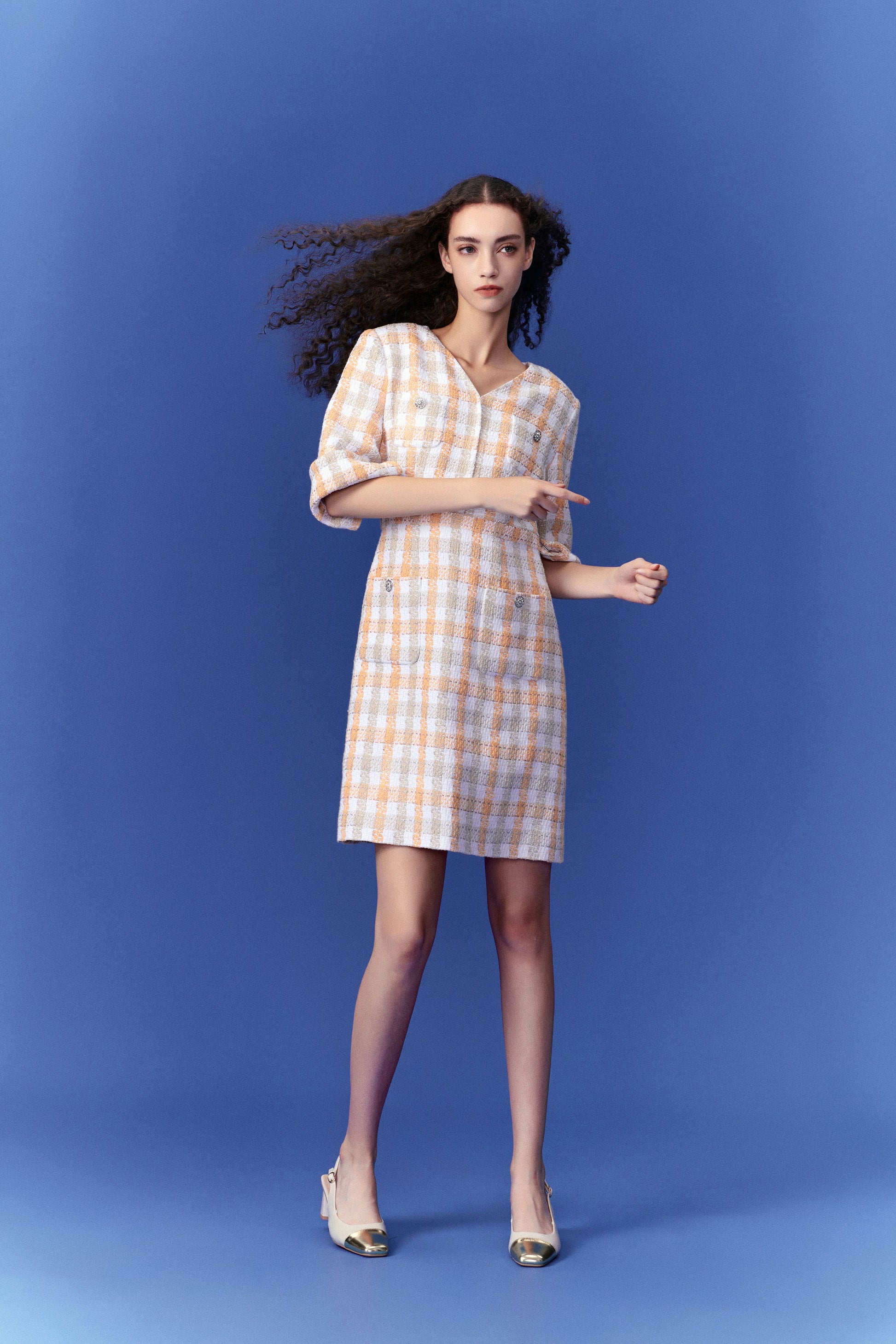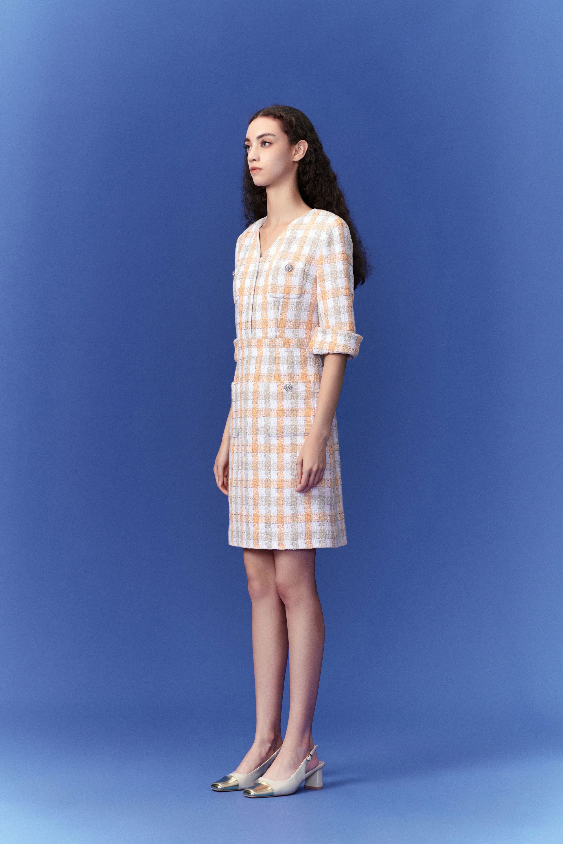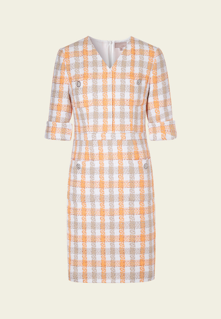Check Pastel Tone Tweed Dress