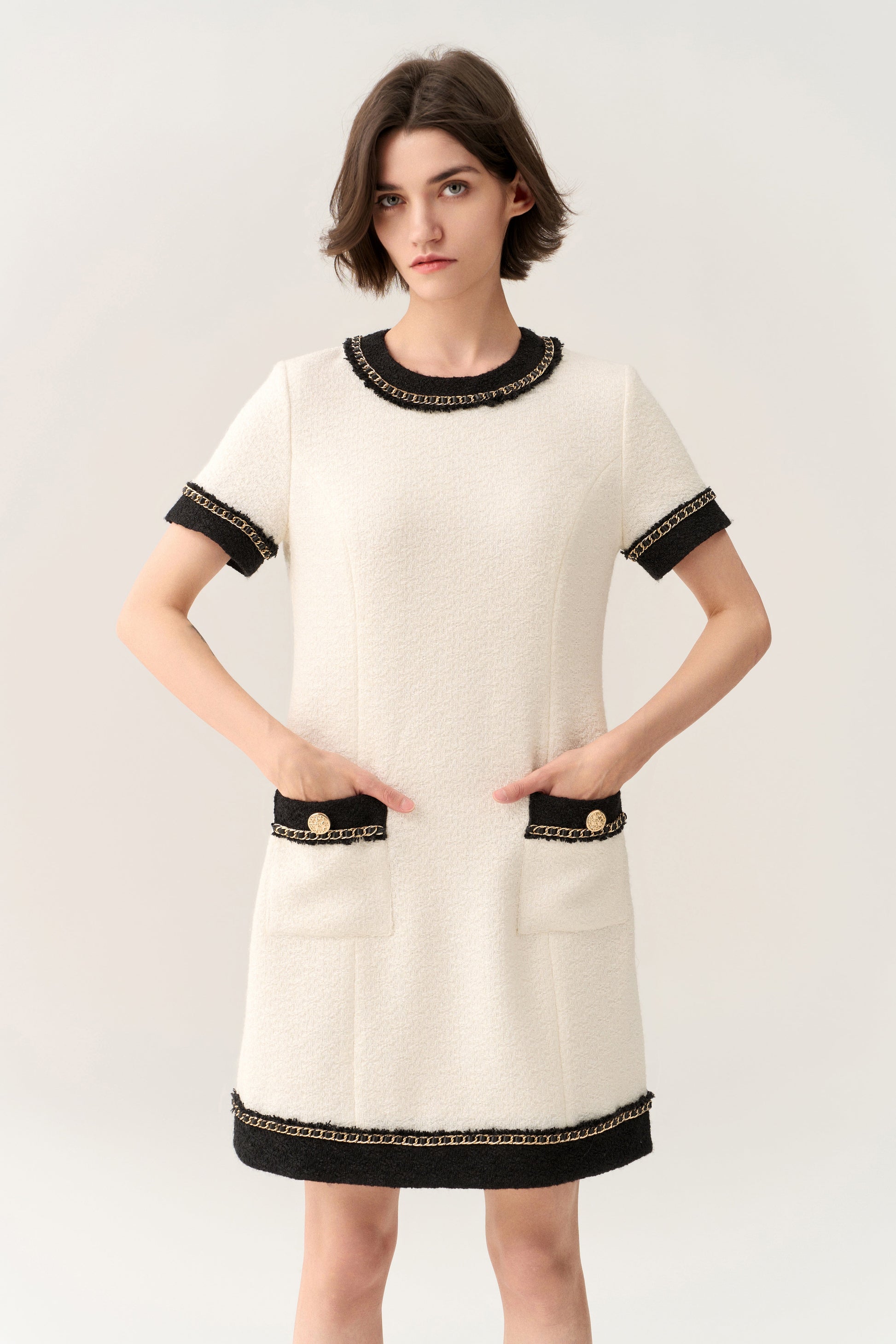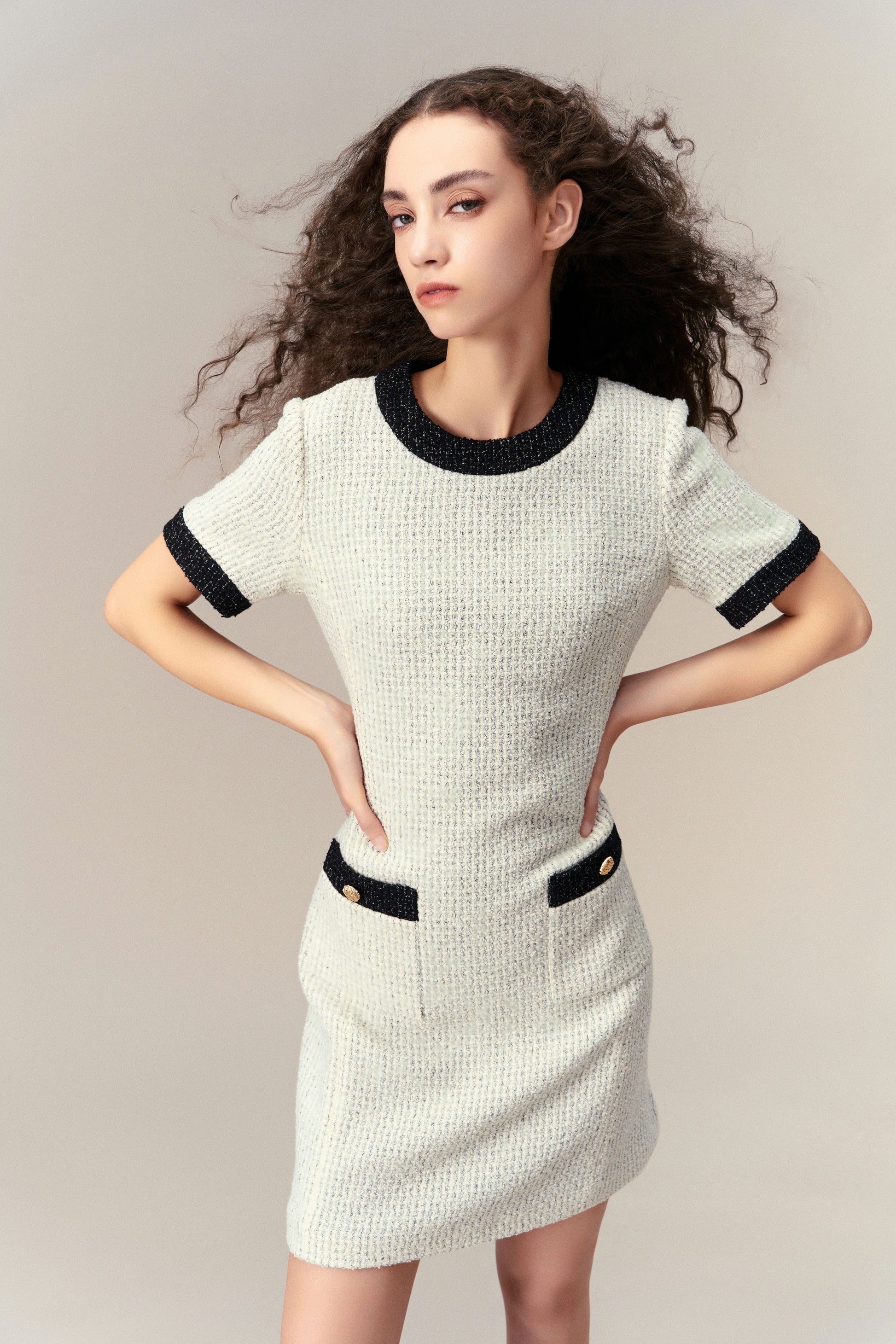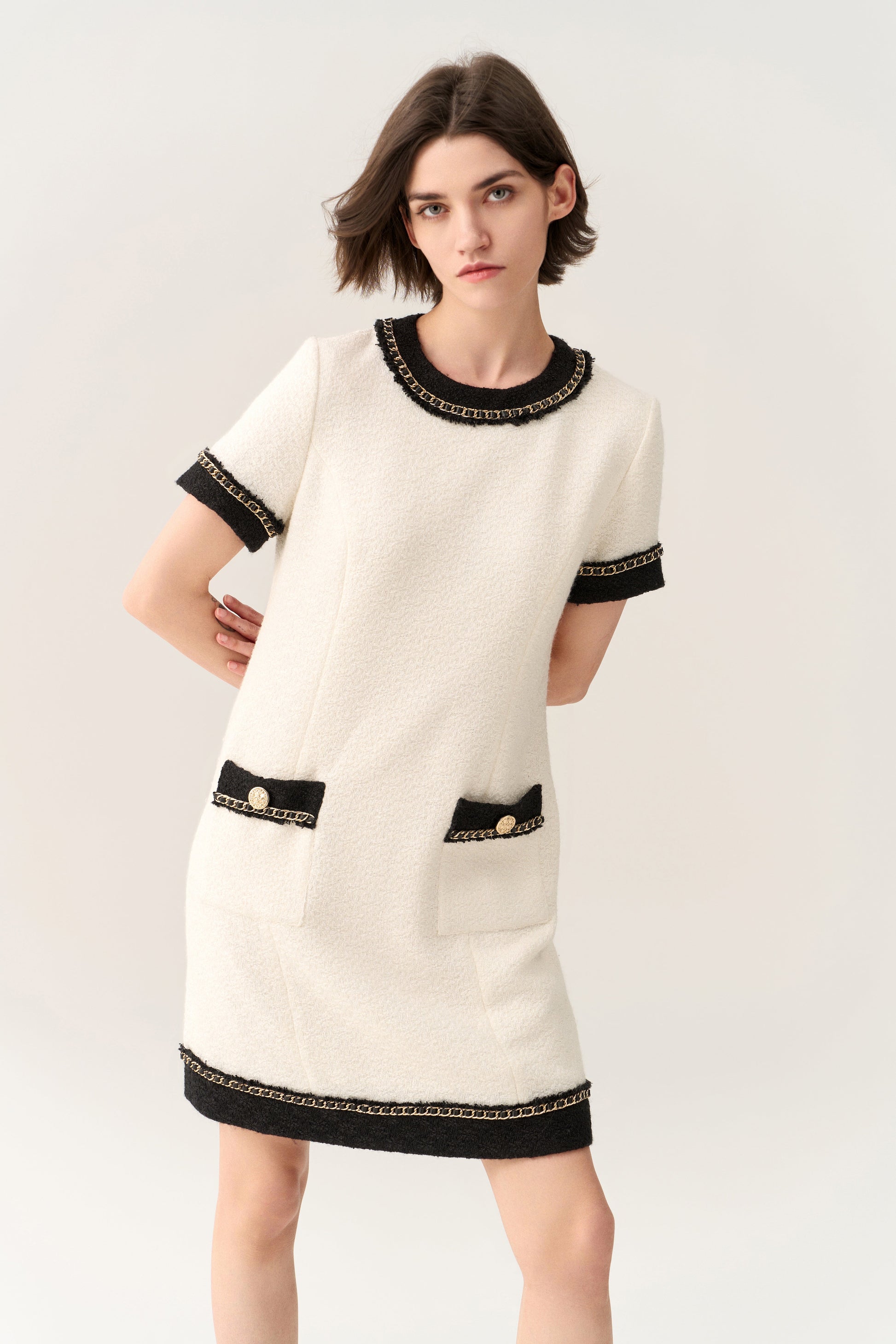 Classy Contrast Tweed Dress