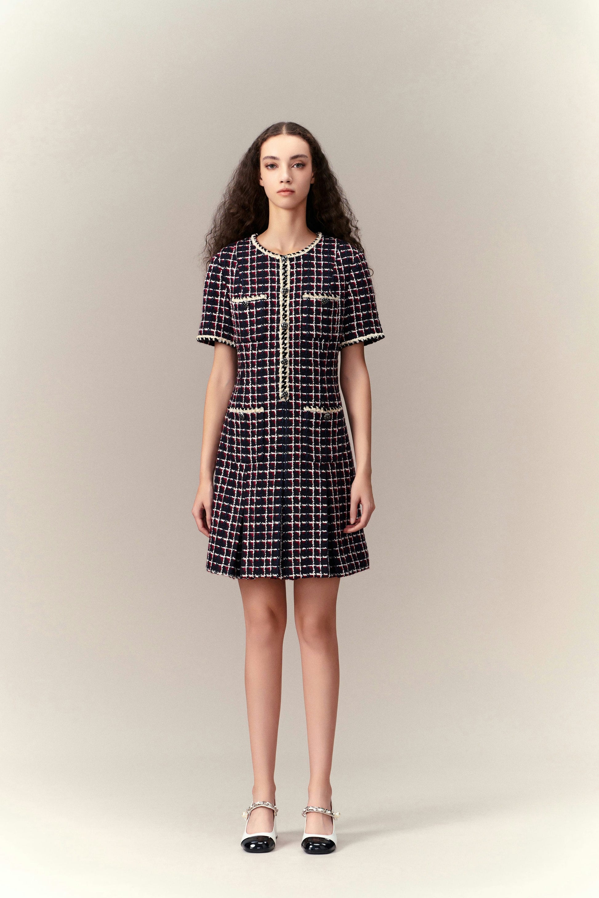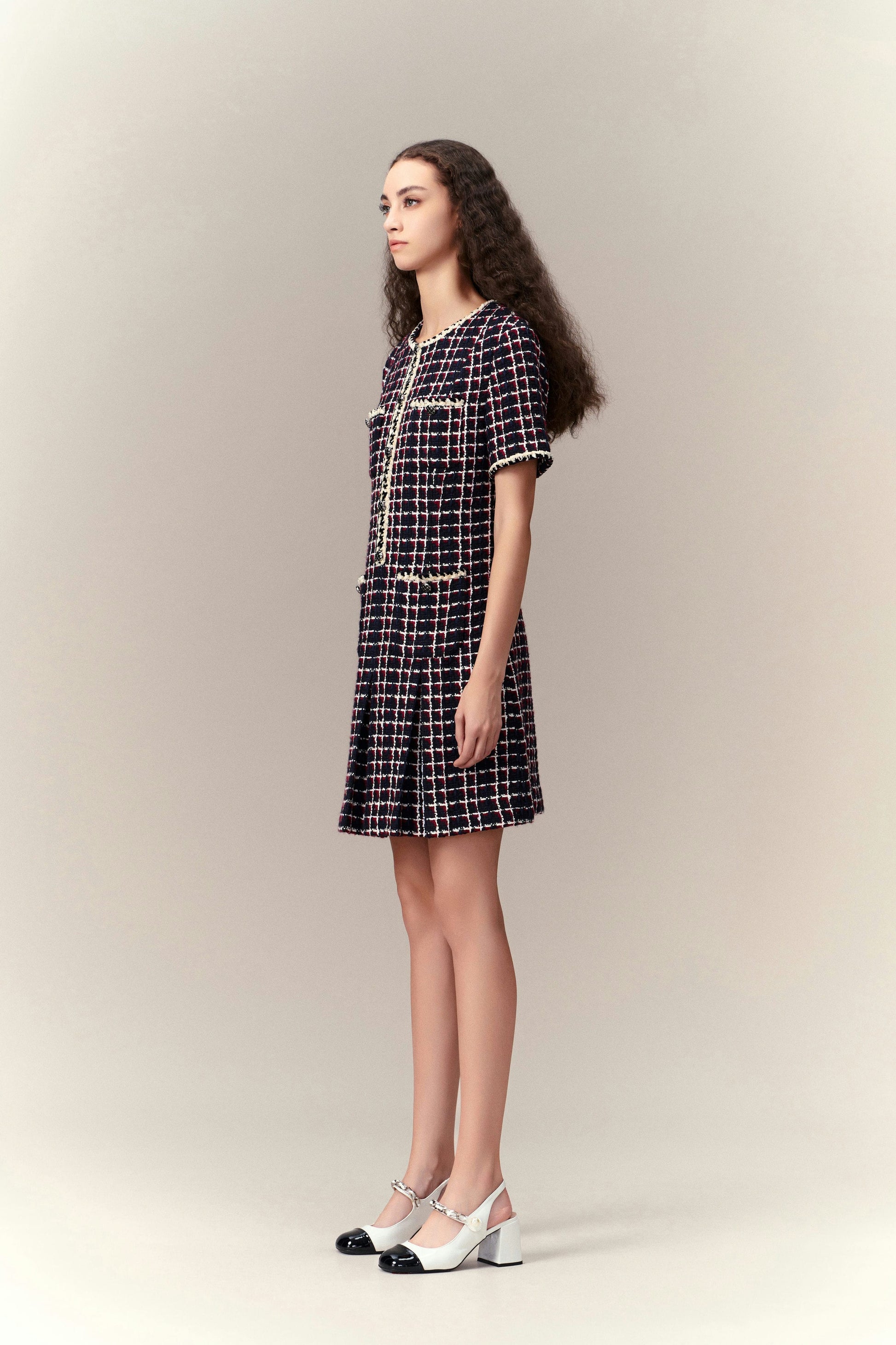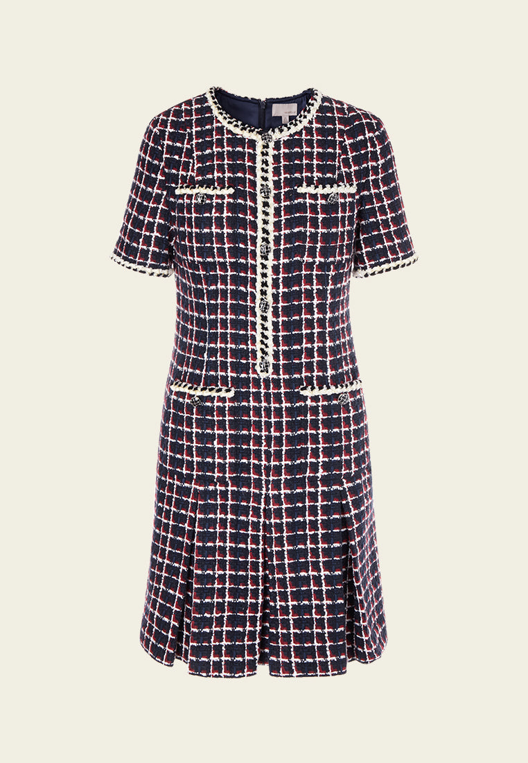 Dignified Pleat-detailed Tweed Dress