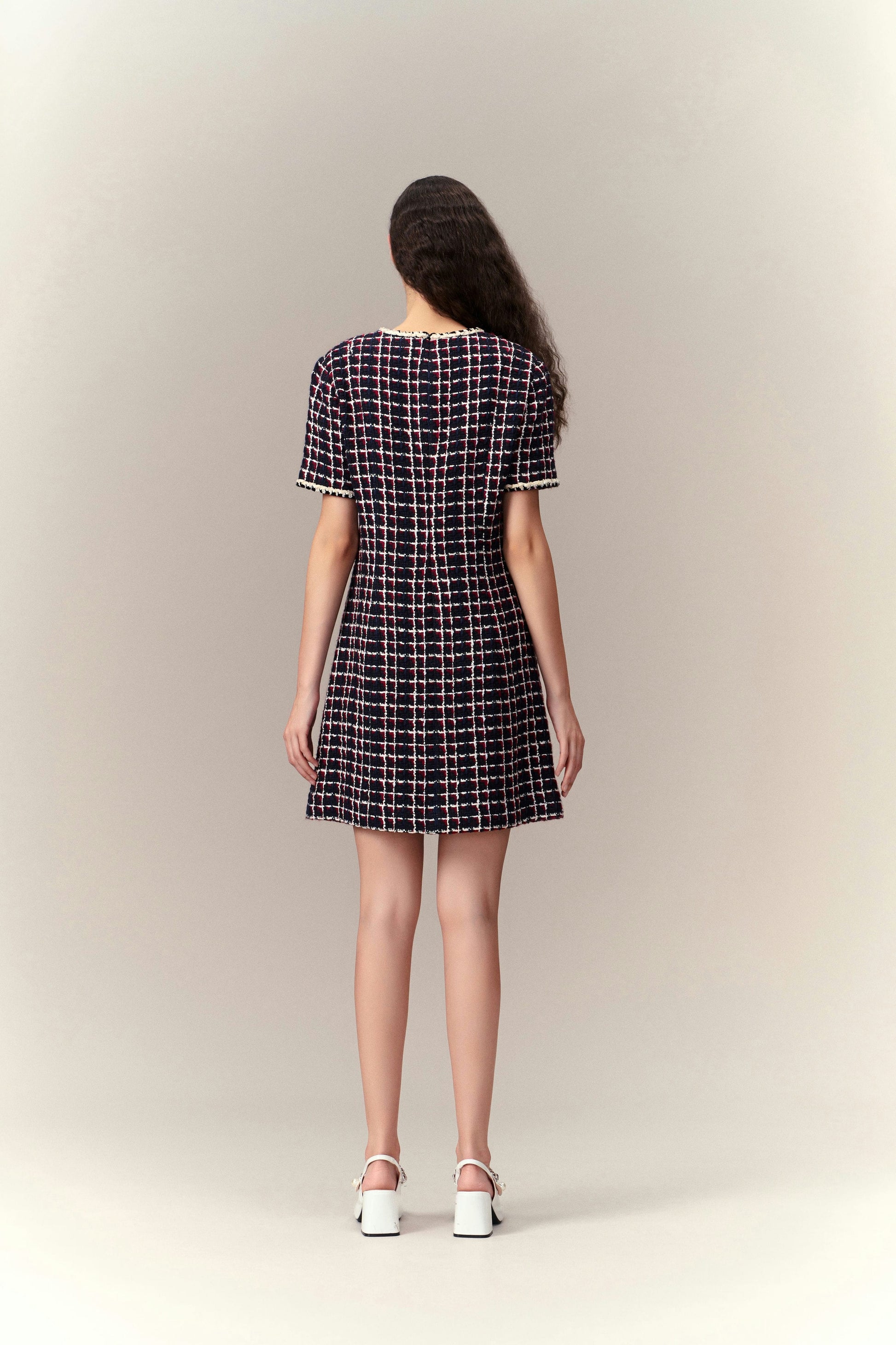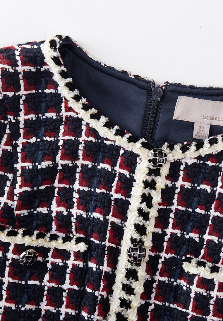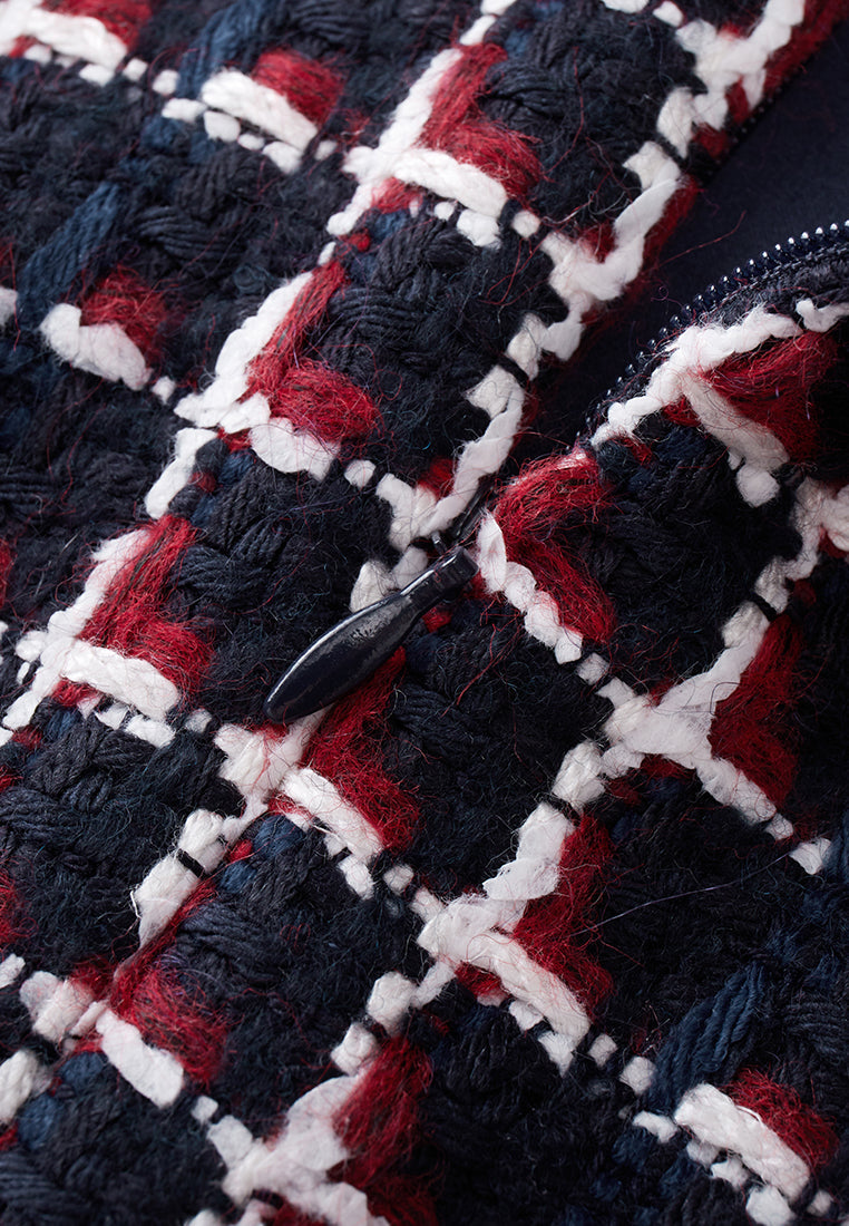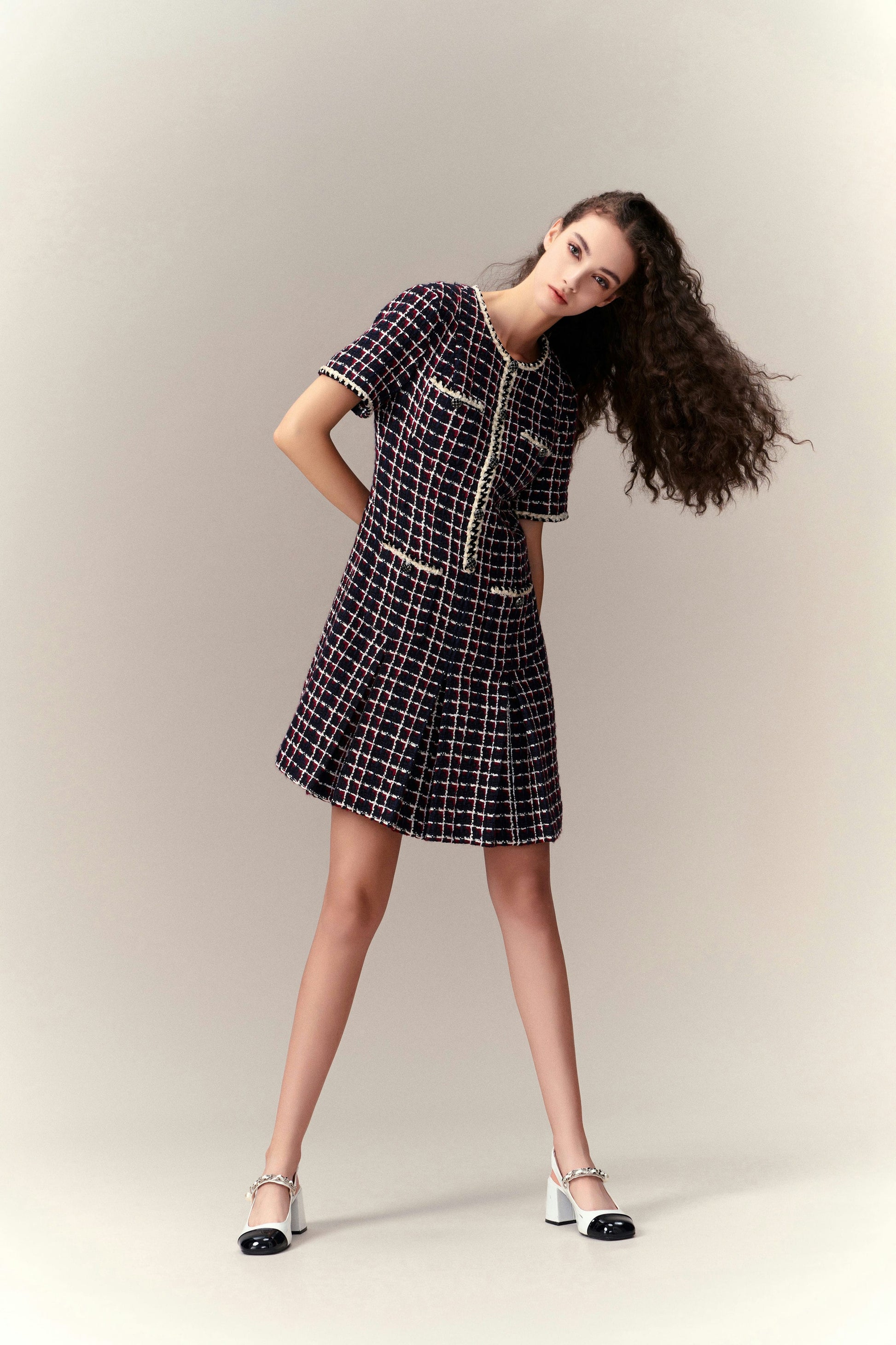 Dignified Pleat-detailed Tweed Dress