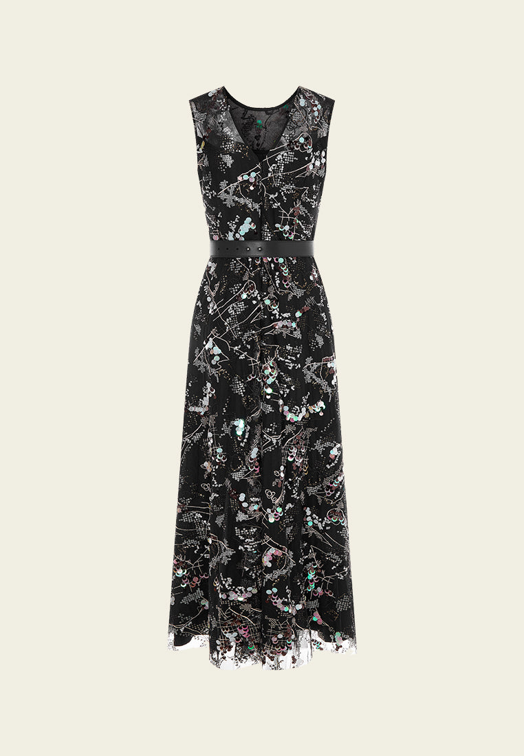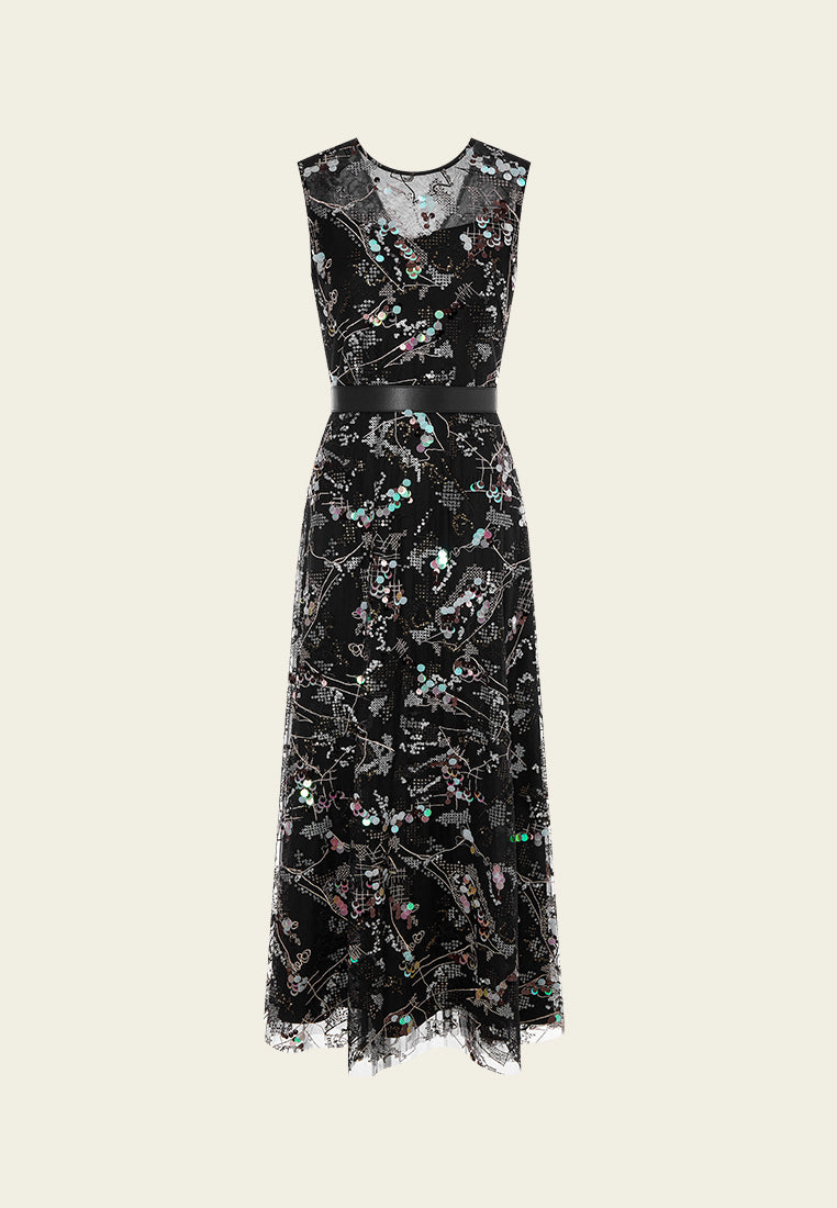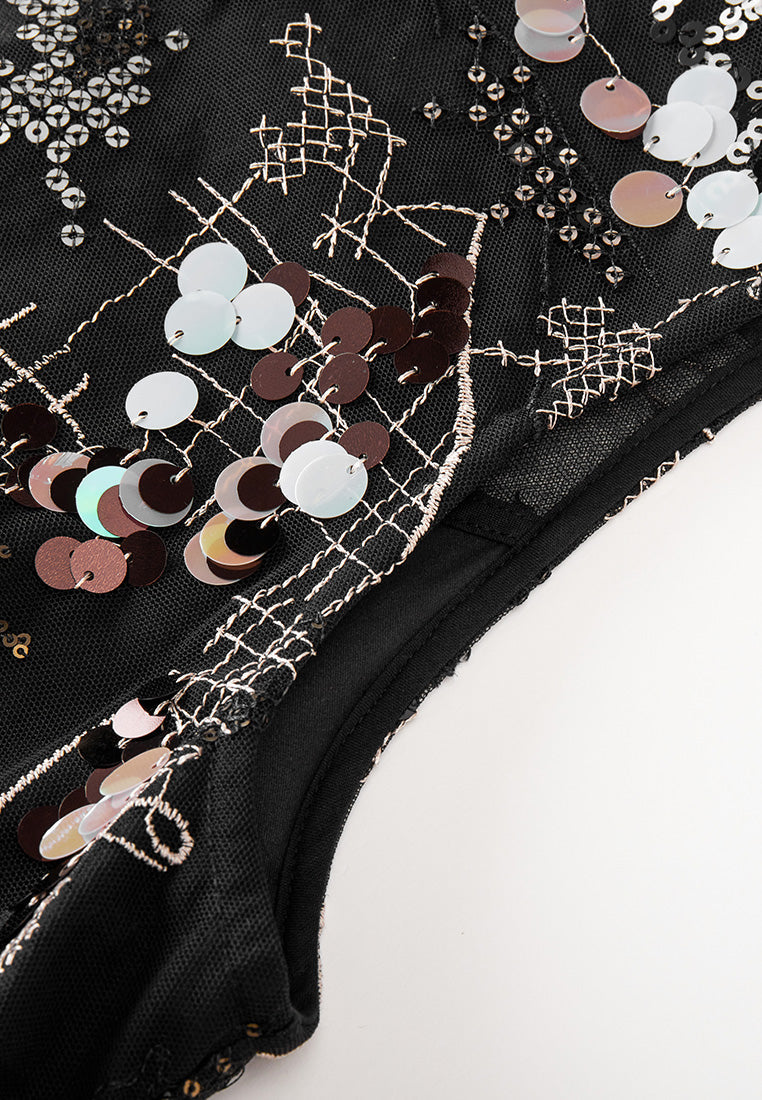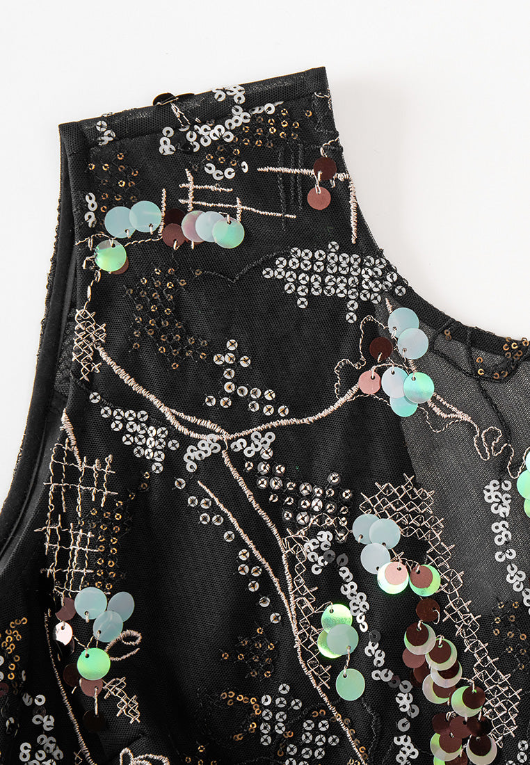 Glamorous Sequin-embellished Sleeveless Mesh Dress