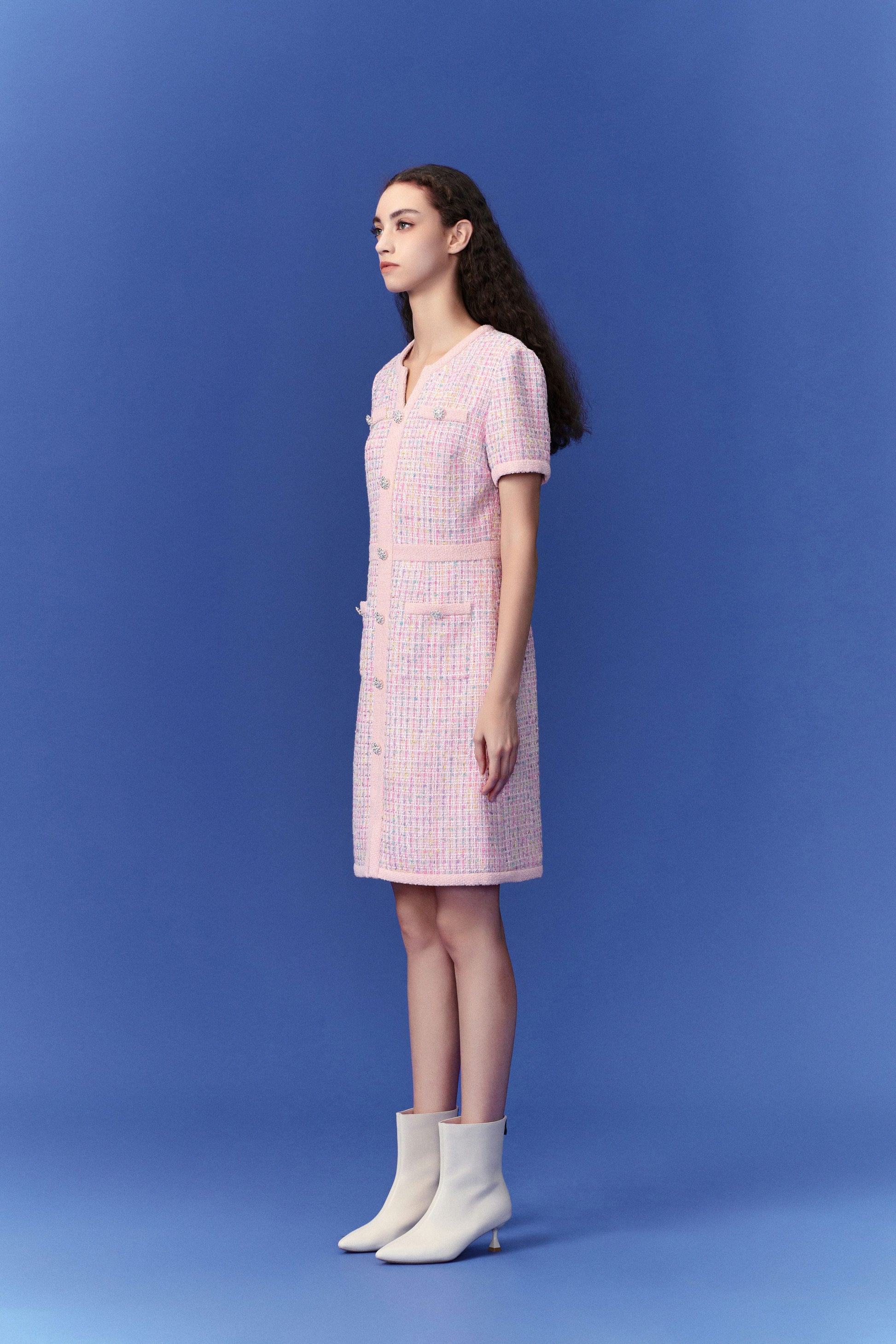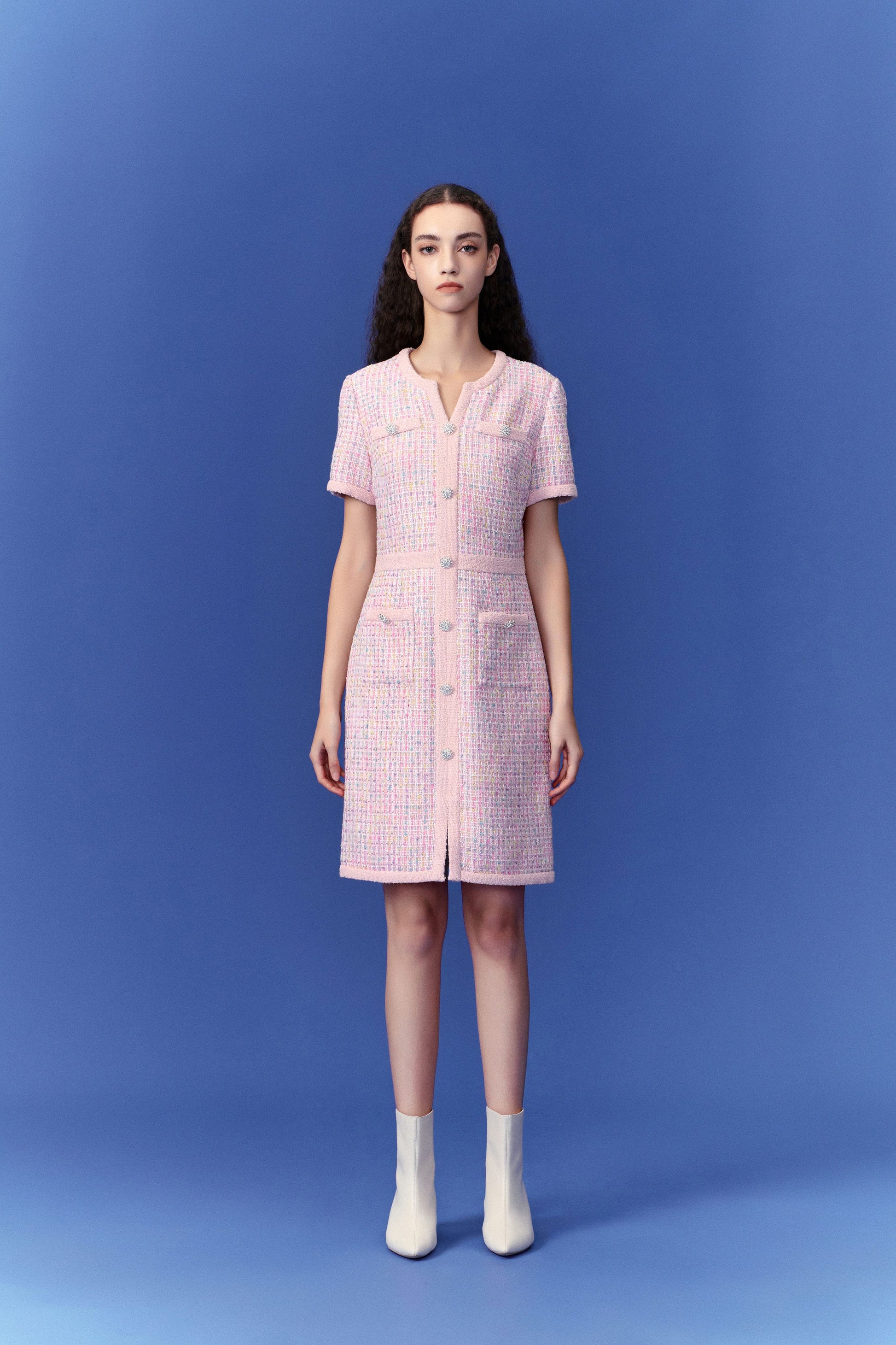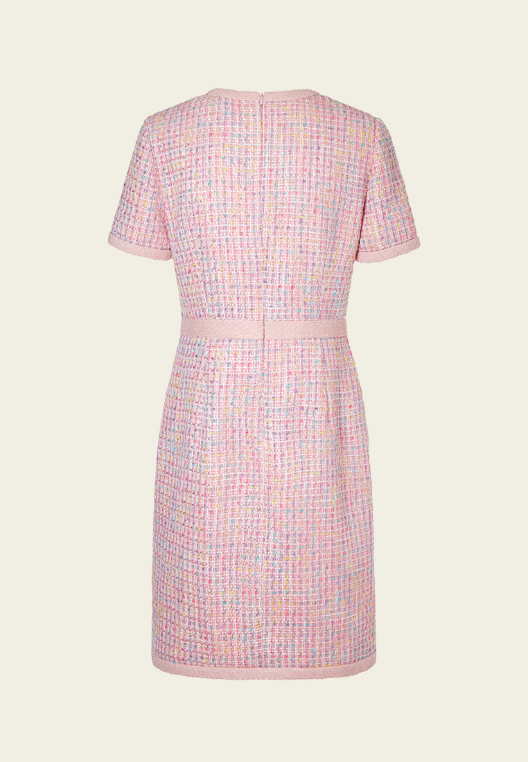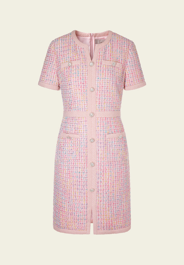 Pastel V-neck Tweed Dress