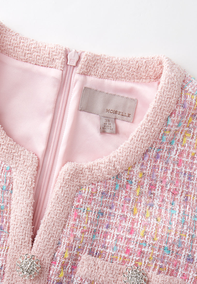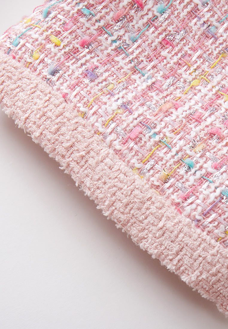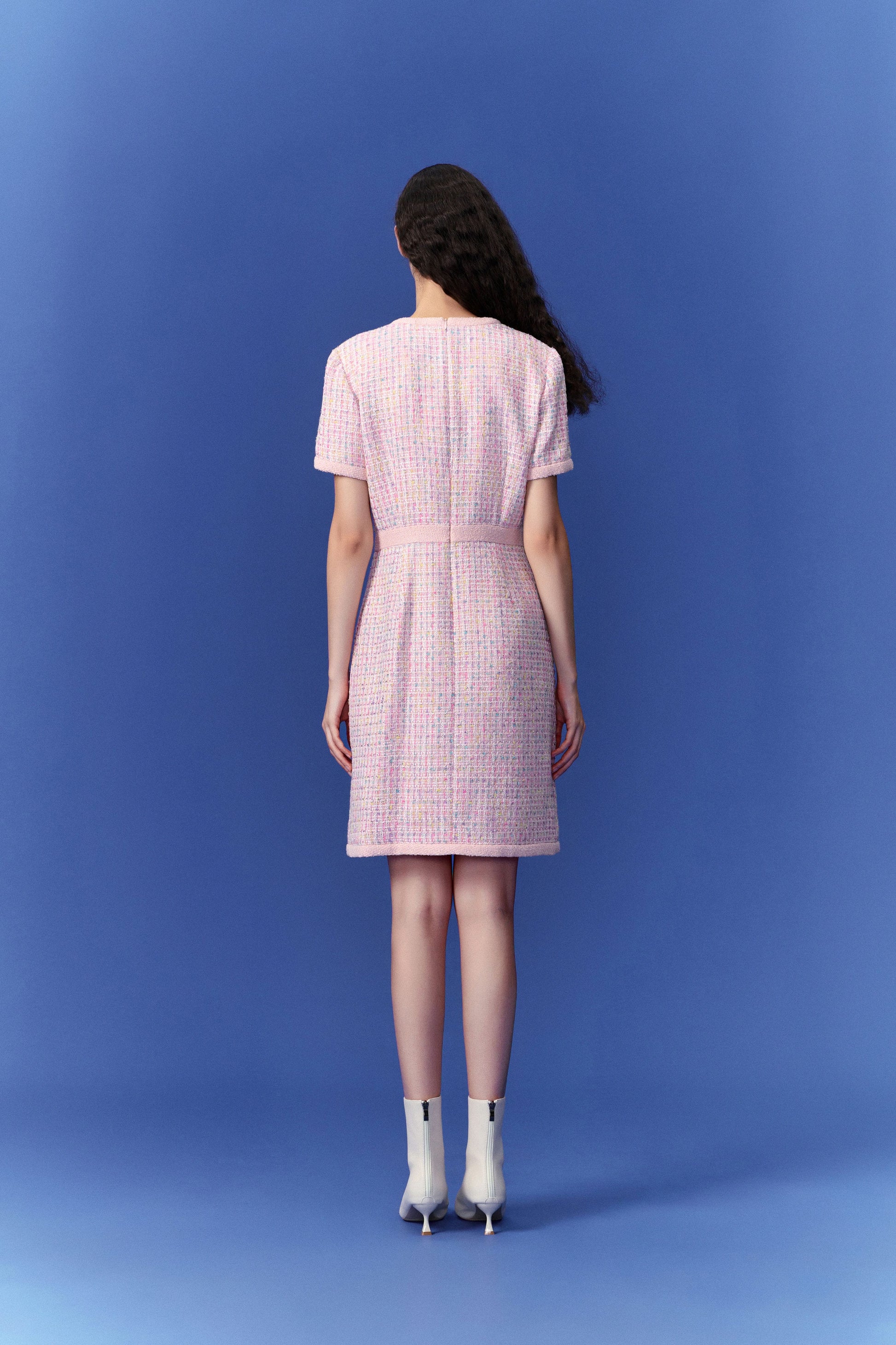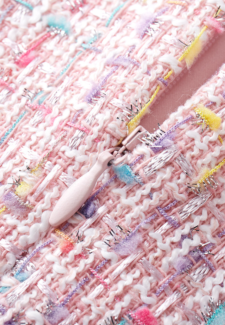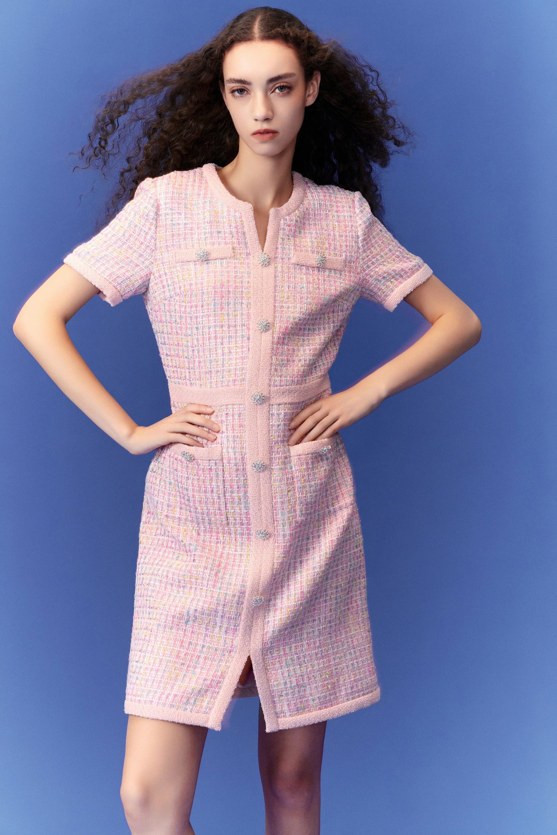 Pastel V-neck Tweed Dress
